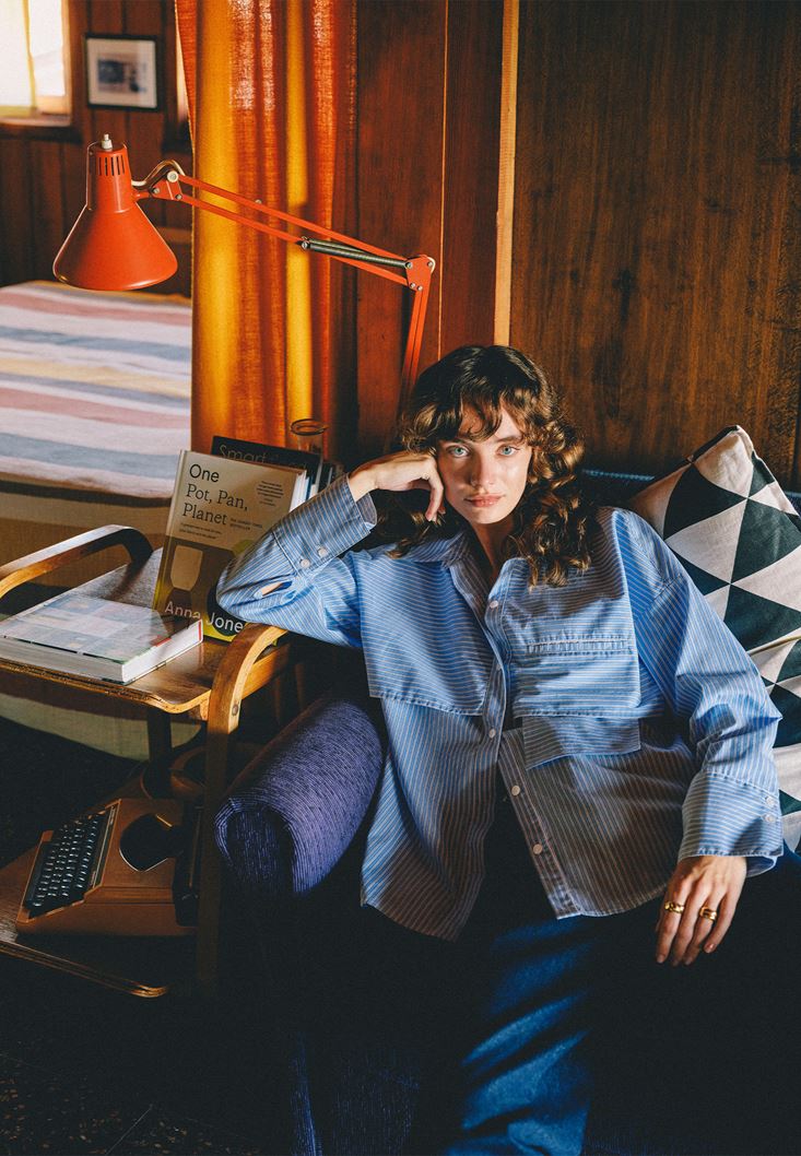 Cep Detaylı Çizgili Gömlek ve Pantolon Kombini