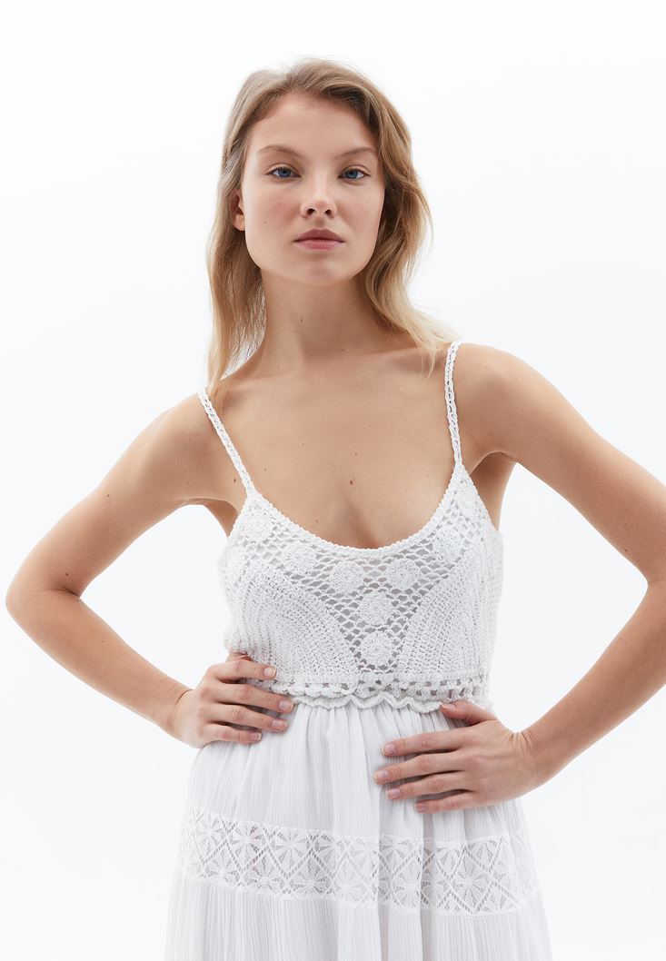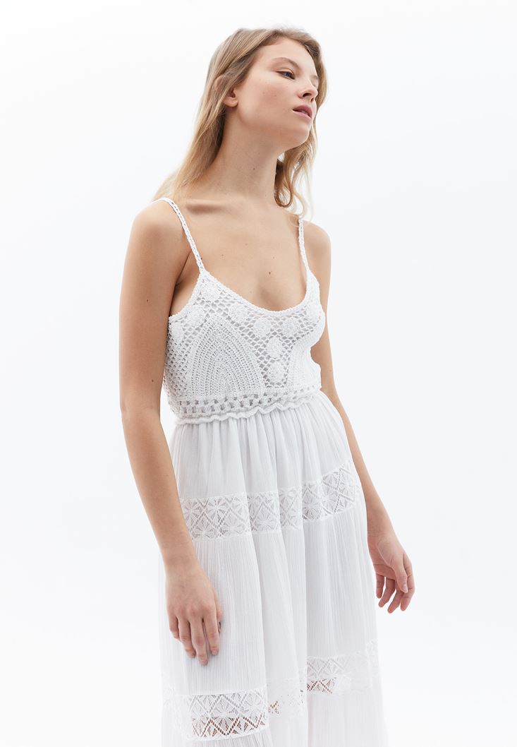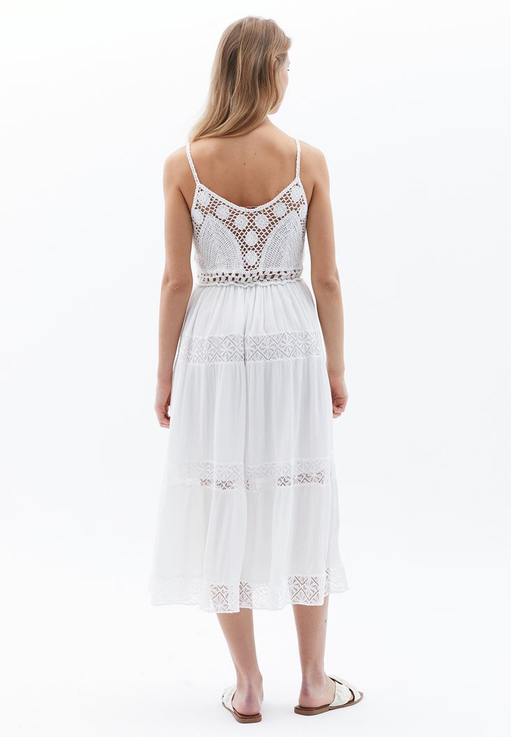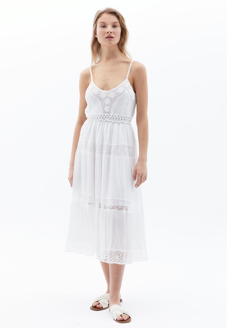 Midi Elbise ve Makrome Terlik Kombini