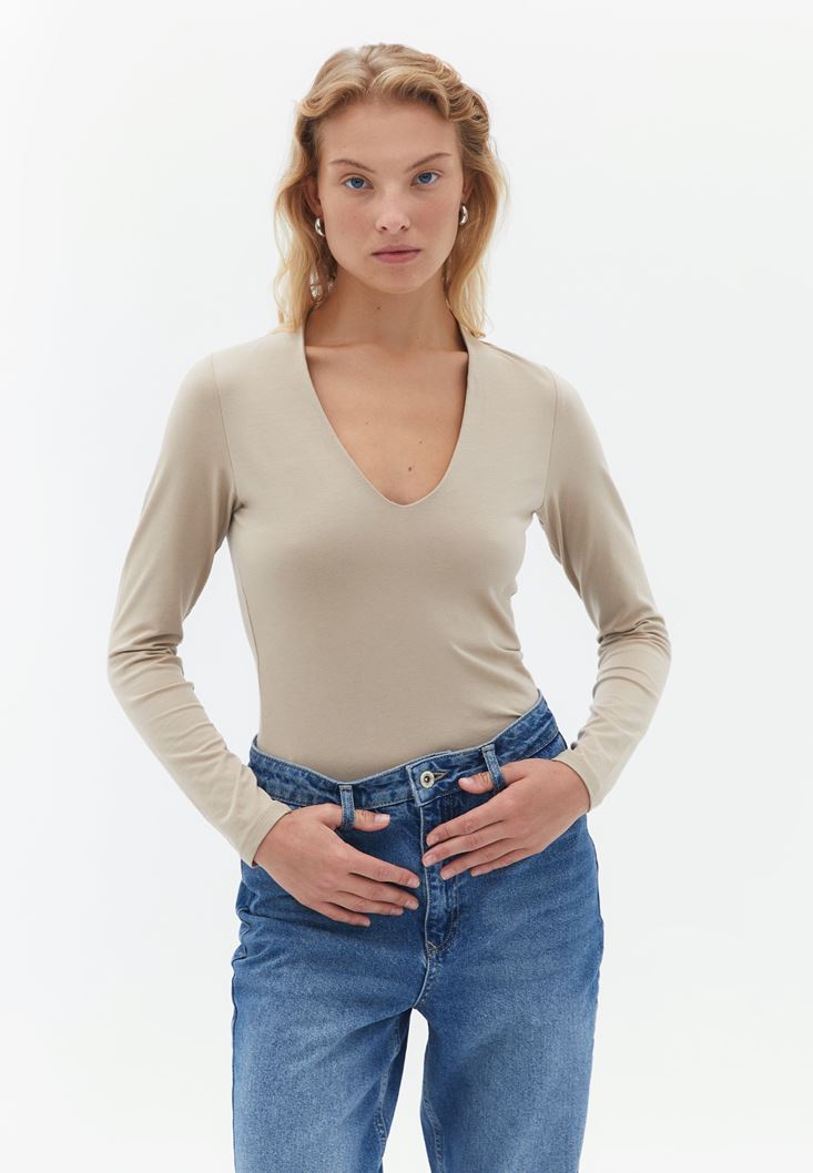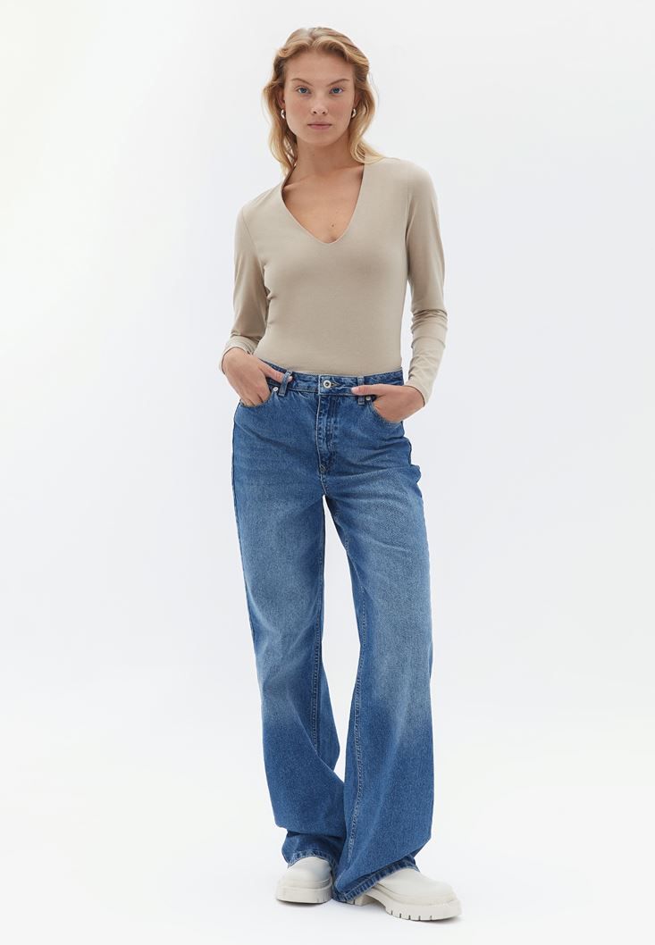 V Yaka Tişört ve Yüksek Bel Pantolon Kombini
