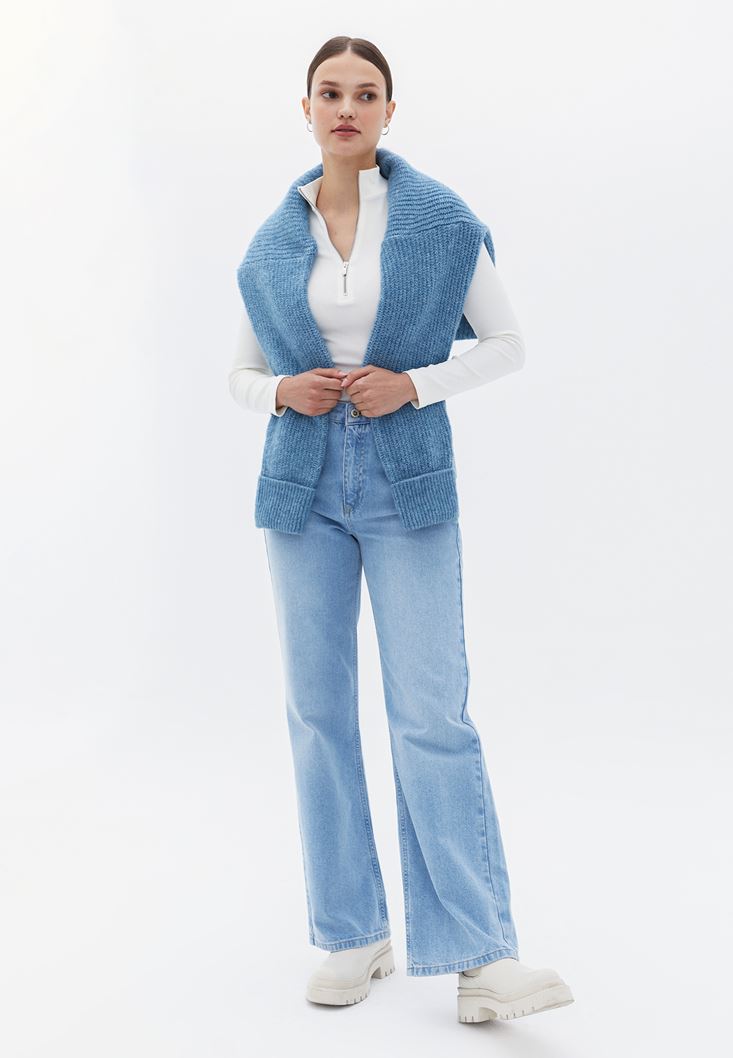 Yüksek Bel Wide-Leg Denim Pantolon