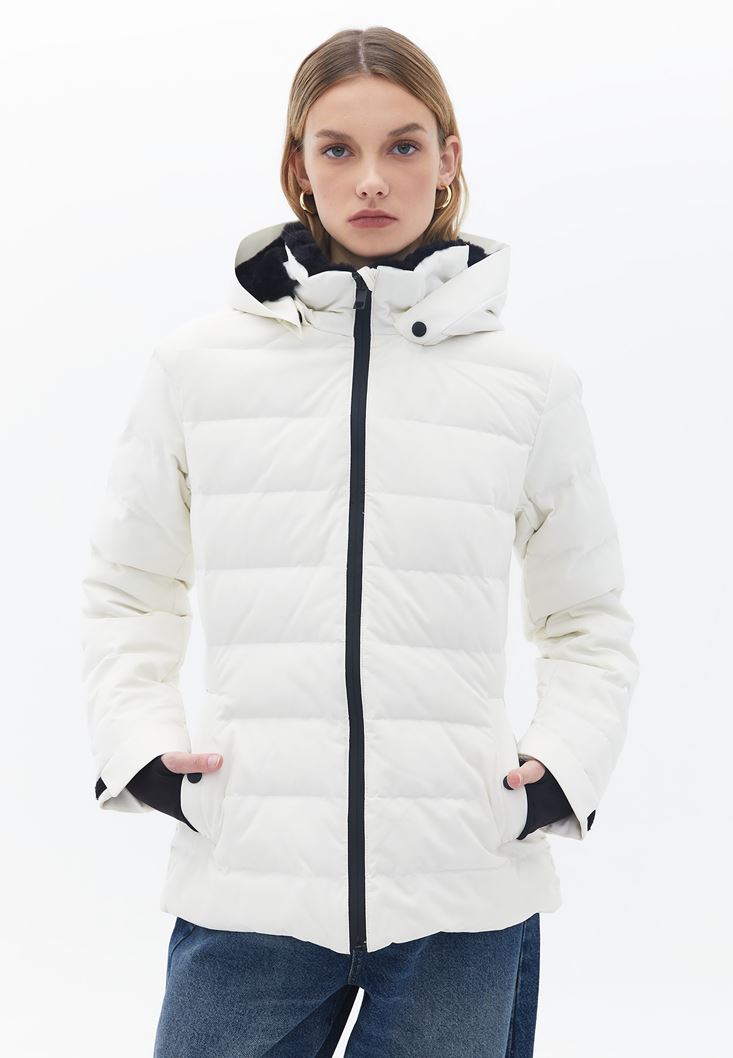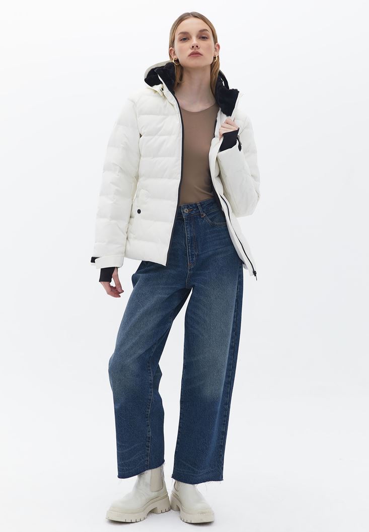 Kaz Tüyü Şişme Mont ve Bootcut Pantolon Kombini