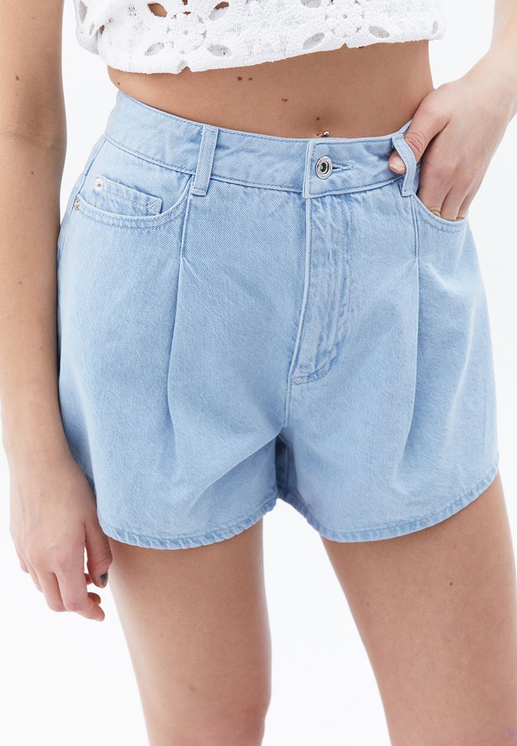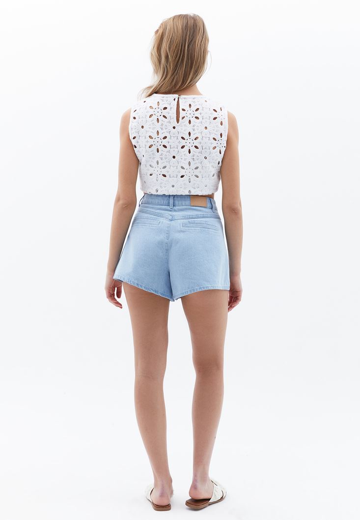 Yüksek Bel Denim Şort ve Atlet Kombini