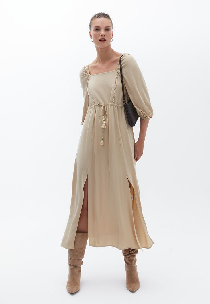 Yırtmaçlı Elbise ve Trençkot Kombini