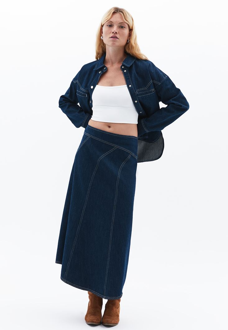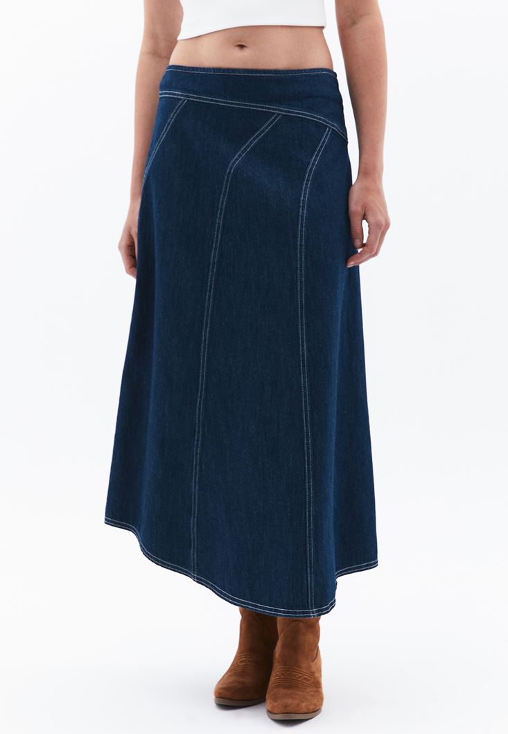 Asimetrik Kesim Denim Etek
