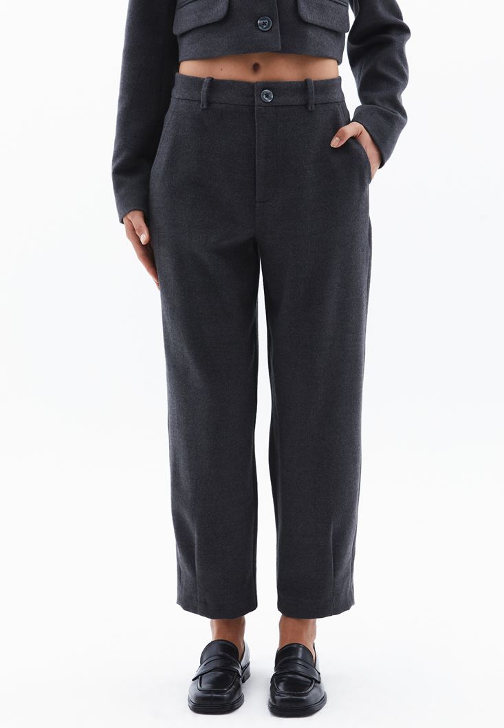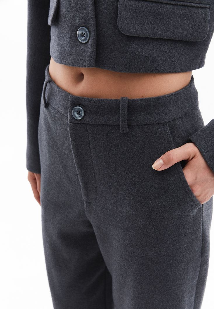 Orta Bel Pantolon ve Crop Ceket Kombini