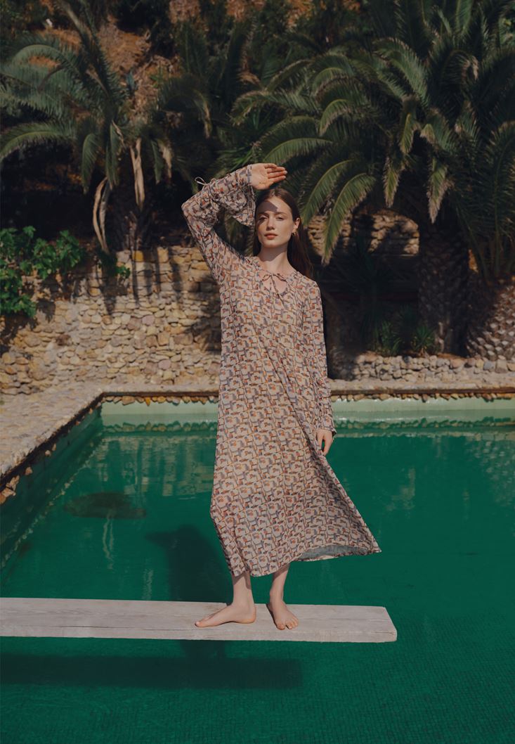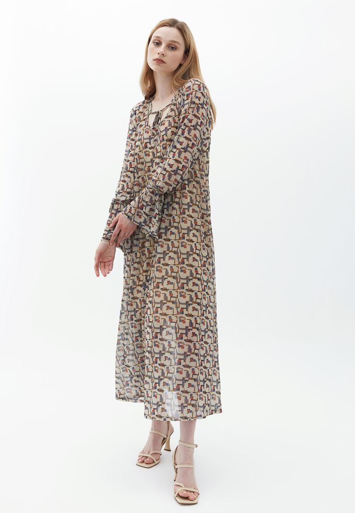Desenli Tül Elbise ve Ayakkabı Kombini
