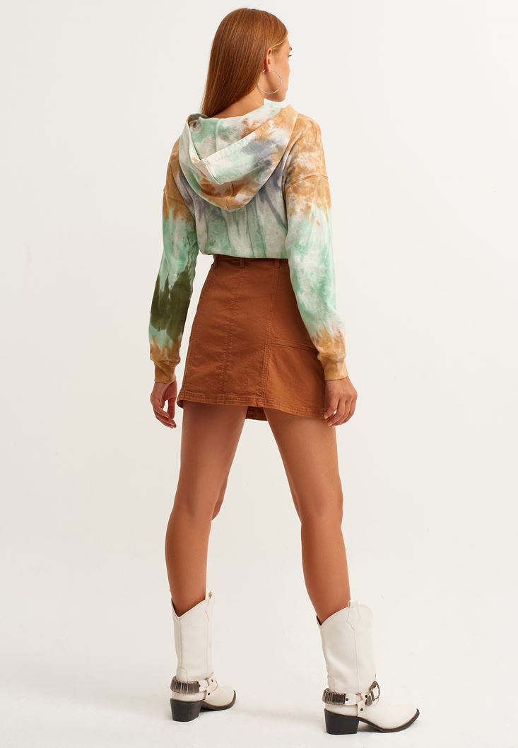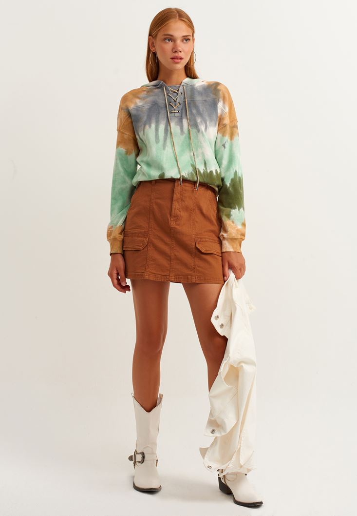 • Bayan Kahverengi A-Line Cepli Mini Etek