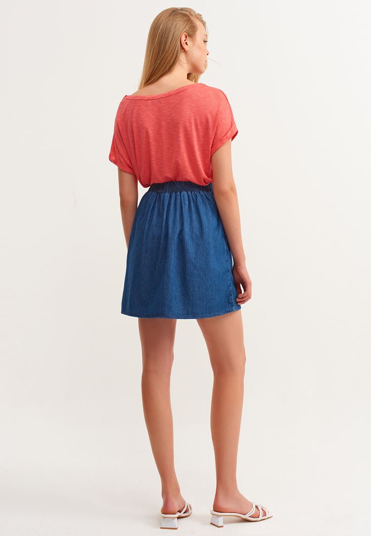 • Bayan Mavi A-Line Denim Mini Etek