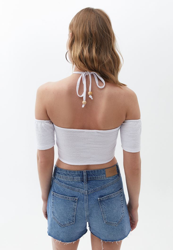 Açık Crop Bluz ve Kruvaze Midi Etek Kombini
