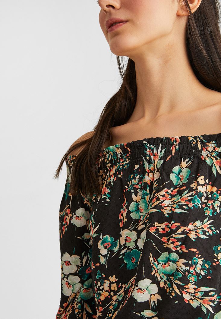 • Bayan Siyah Açık Omuzlu Çiçek Desenli Bluz