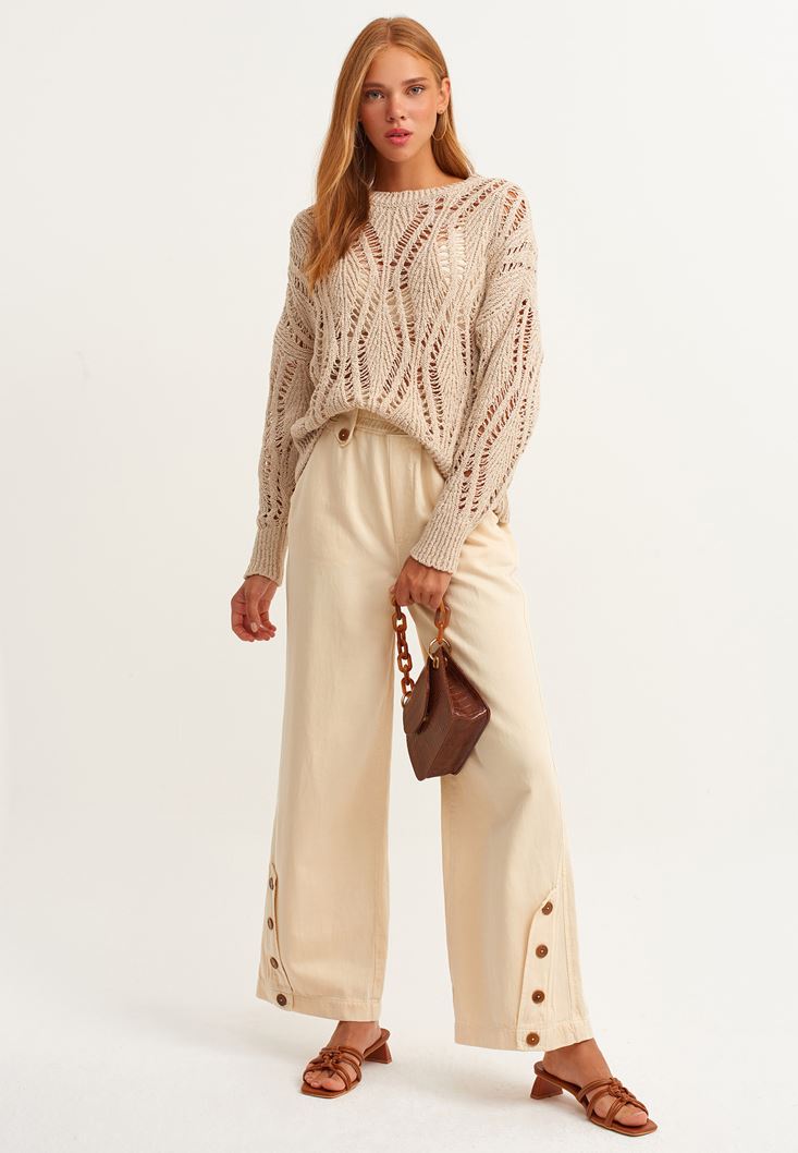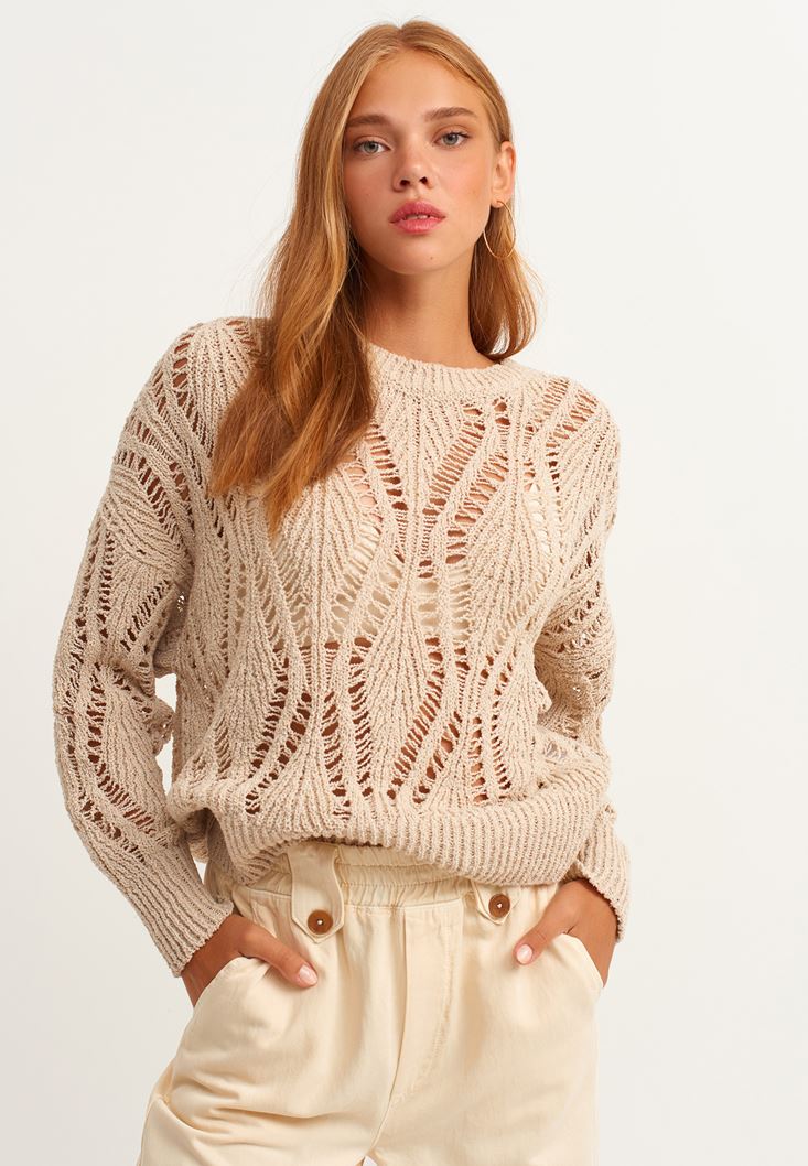 Ajurlu Bohem Triko modeli. Pamuk içeriğin doğallığını yakalamak konusunda fazlasıyla uygun olan bu parça kombinlerin için ideal! Ne giyeceğine karar veremediğin günlerde o imdadına yetişecek... Ajurlu triko modelinin hoş yapısını dikişsiz crop toplarla ve skinny jeanlerle birleştirmeye hazır ol! Triko modeli ile oluşturacağın sıcacık kombinler eşliğinde hoş arkadaş toplantılarının keyfini çıkar... :)