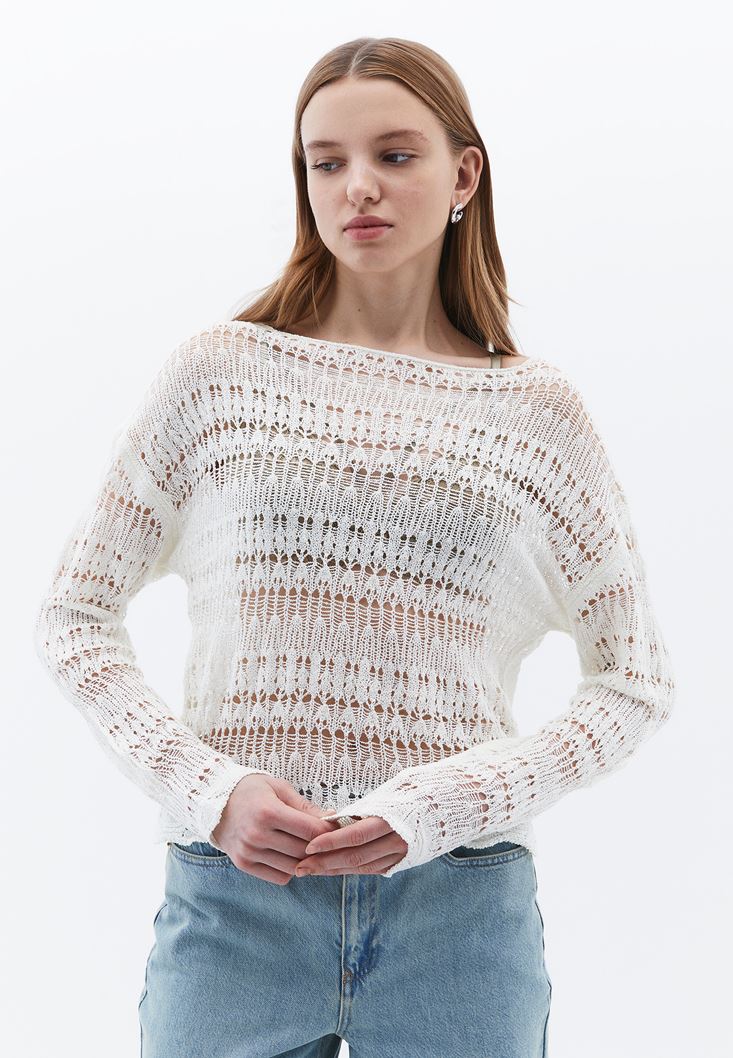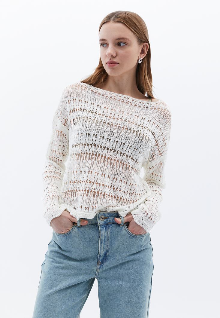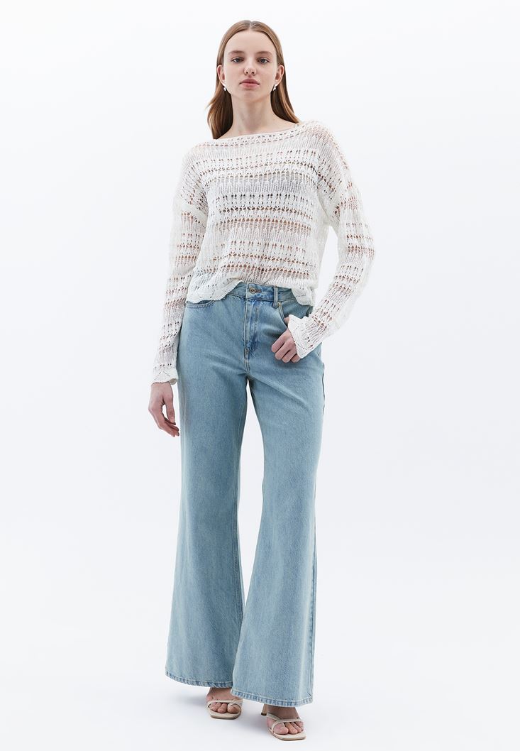 Ajurlu Bot Yaka Kazak ve Denim Pantolon Kombini