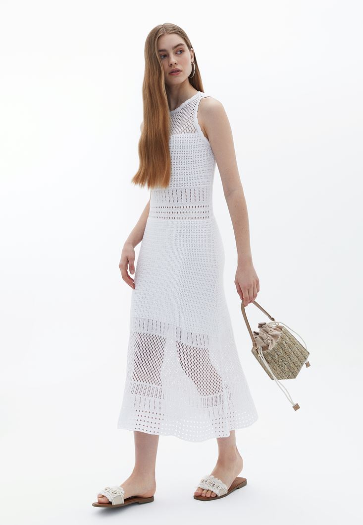Ajurlu Elbise ve Makrome Çanta Kombini