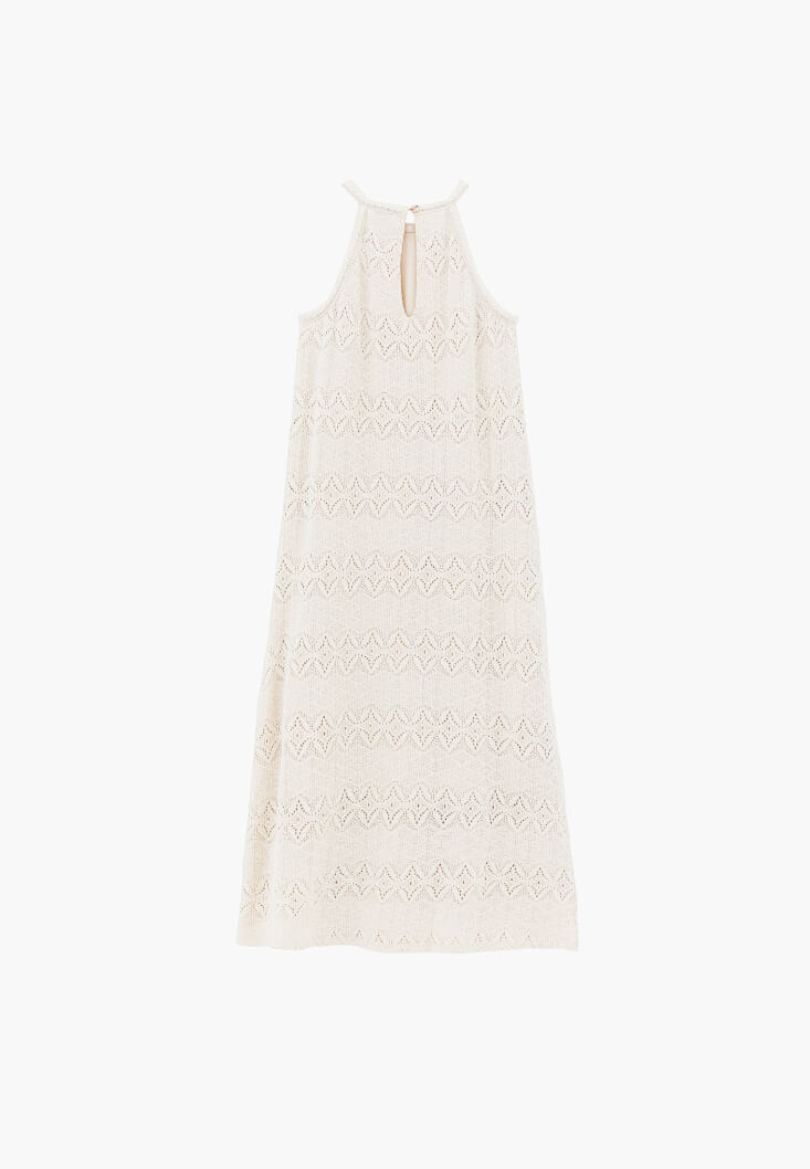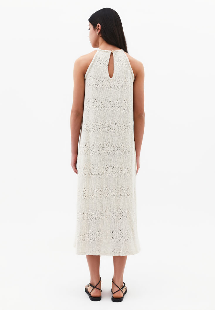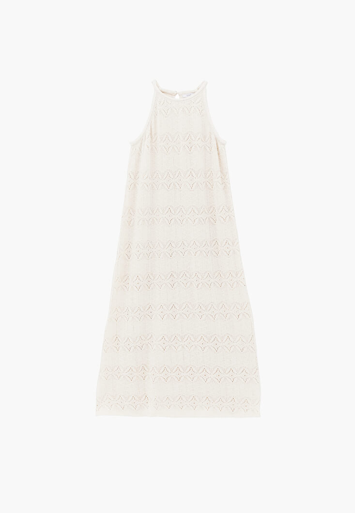 Krem Ajurlu Halter Yaka Elbise