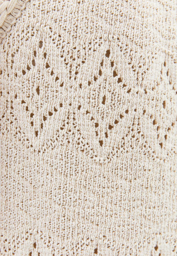 • Bayan Krem Ajurlu Halter Yaka Elbise