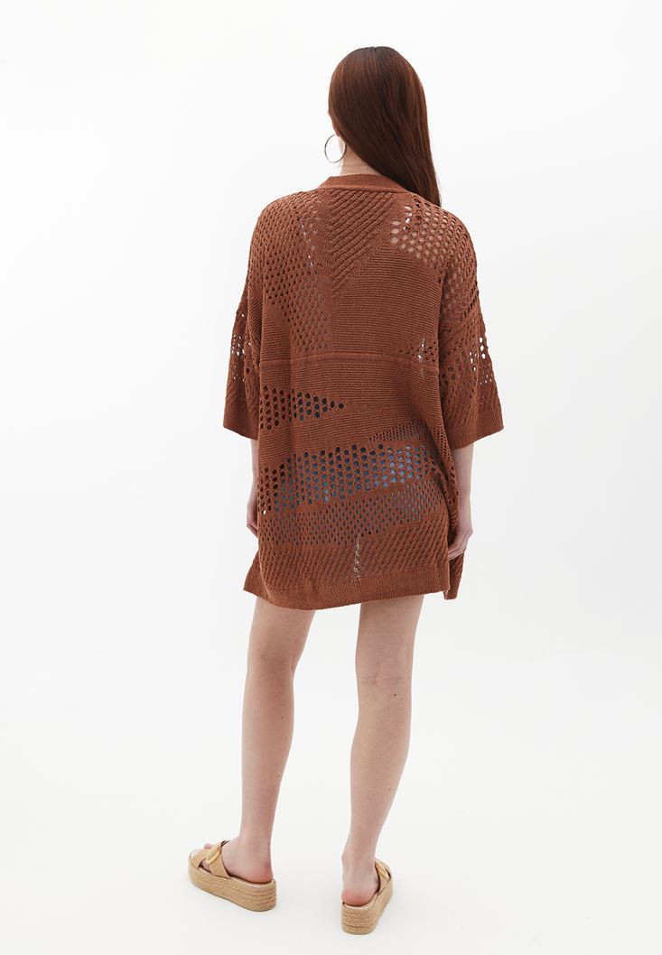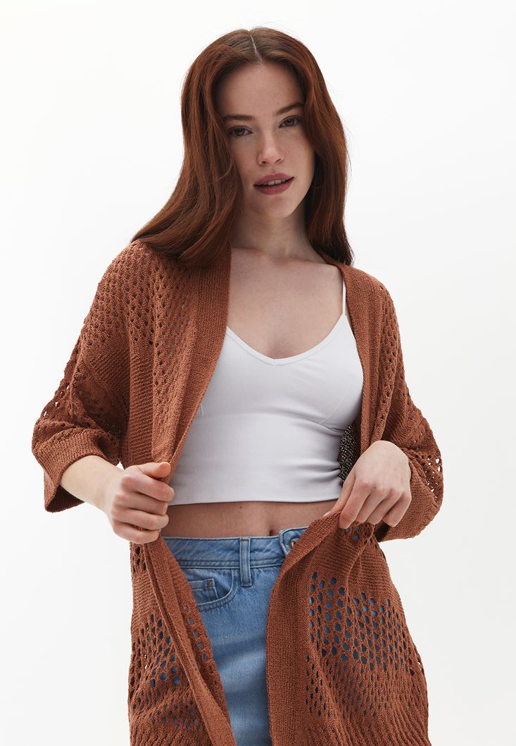 • Bayan Kahverengi Ajurlu Midi Boy Hırka