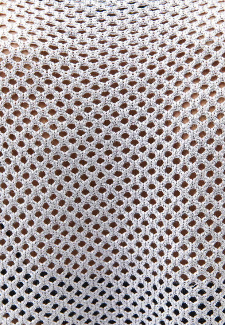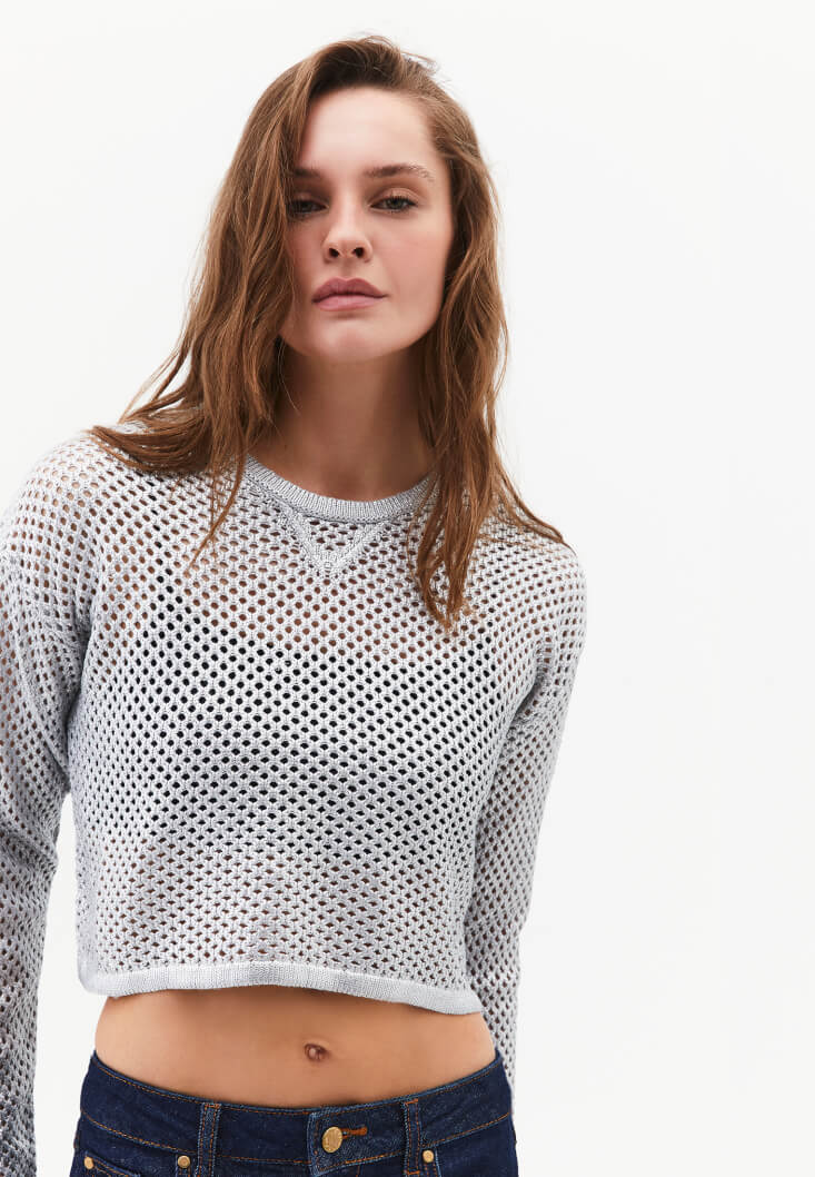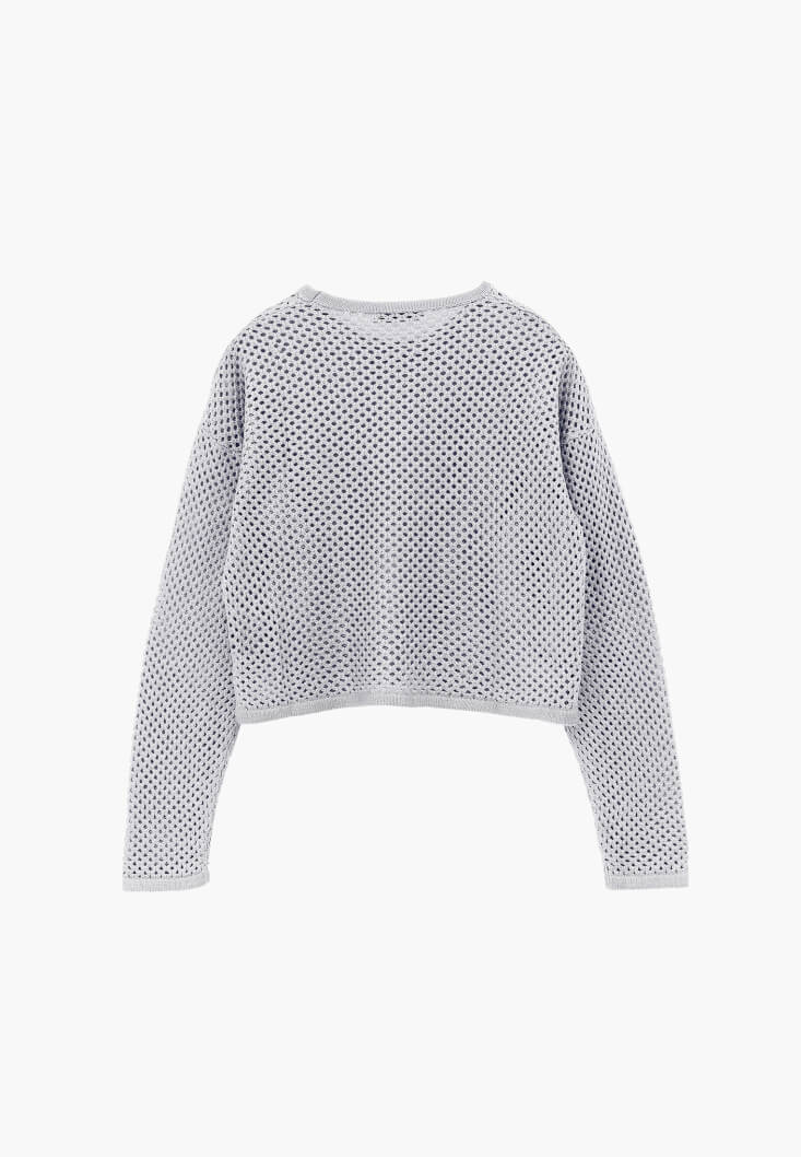 • Bayan Gümüş Ajurlu Sıfır Yaka Crop Kazak