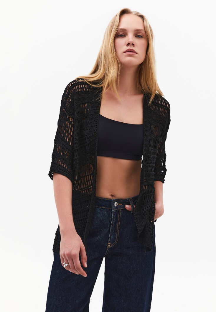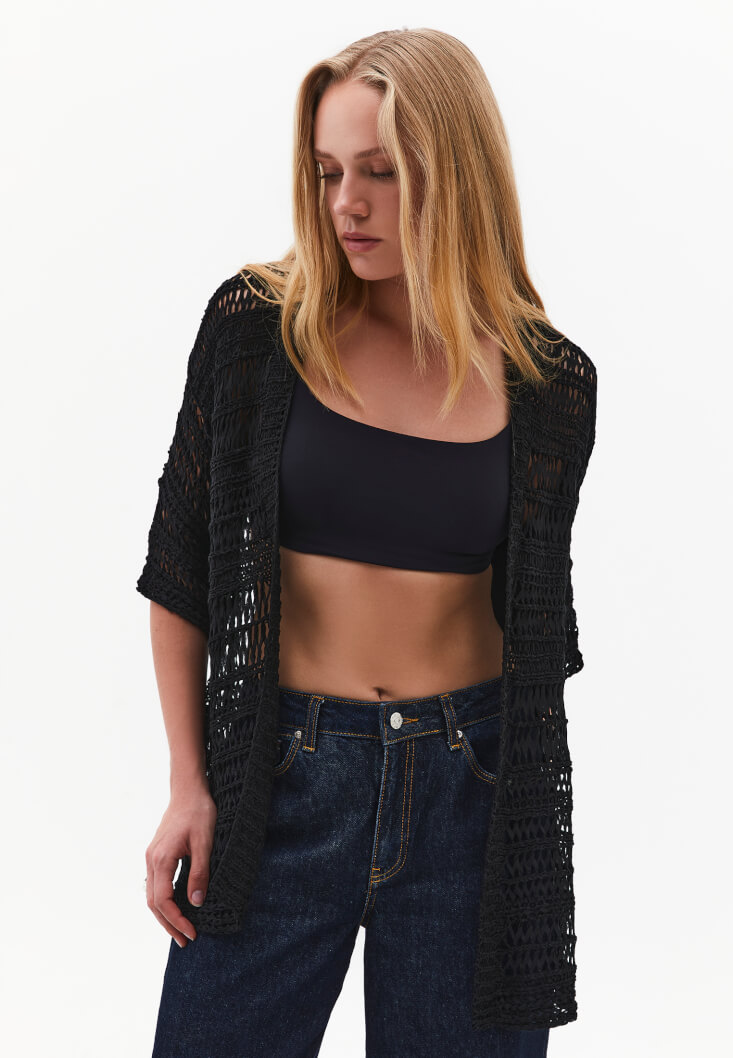 Siyah Ajurlu Triko Hırka