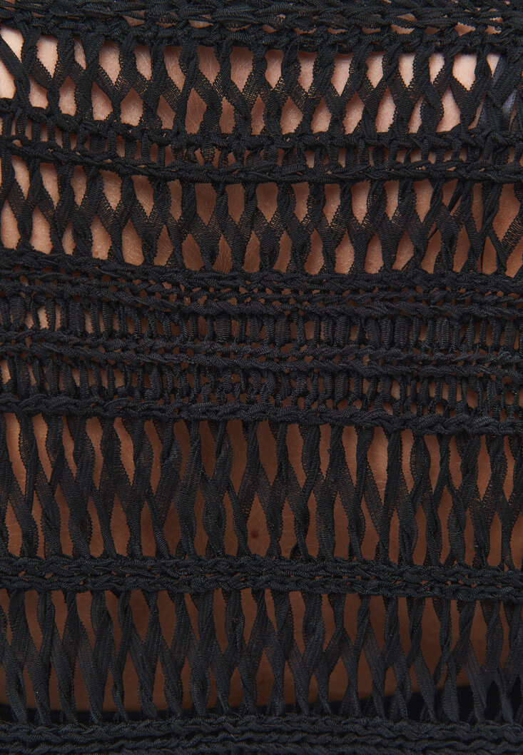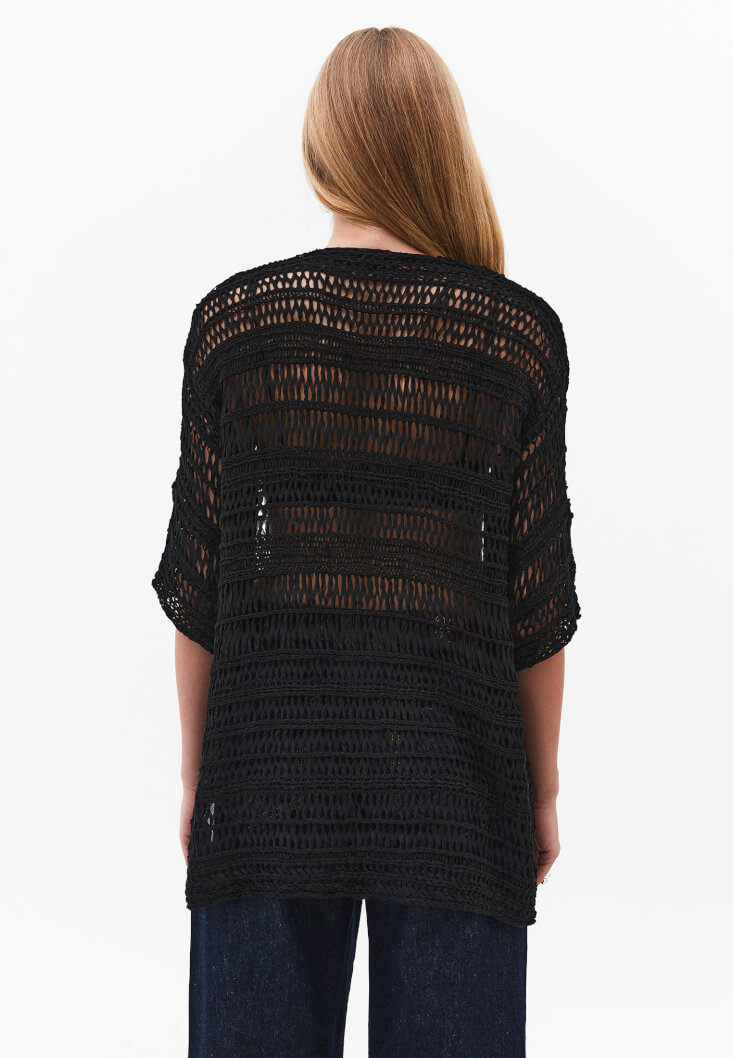 Ajurlu triko örgü, bedenden uzak relax fit, yarım kollu, midi boy.