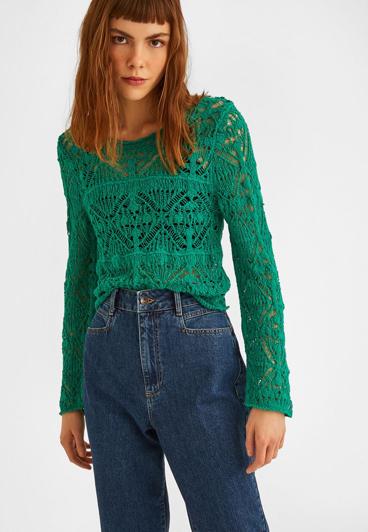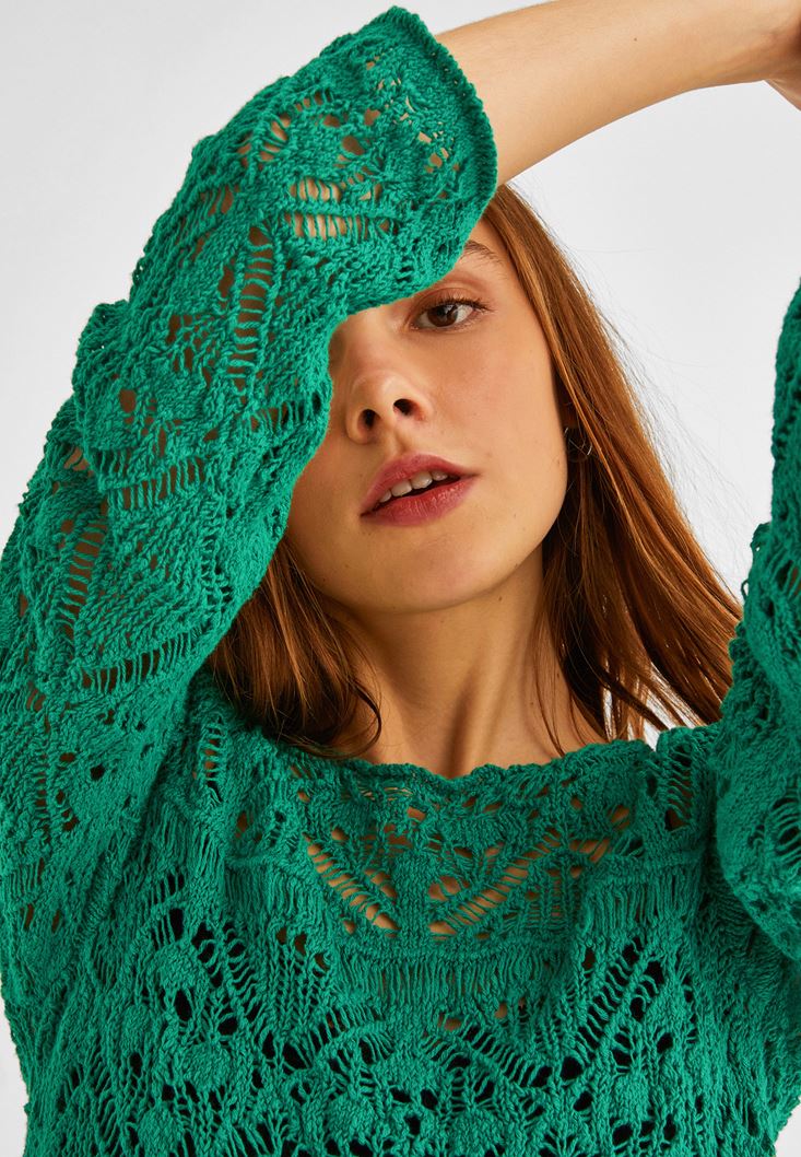 Ajurlu Triko Kazak modeli, pamuk içerikli mükemmel dokusu ve dikkat çeken nakışlı örgü yapısı ile yeni sezonda sizlere sunuluyor. Kadın triko modeli, kısa görünümü ve delikli nakış detayları ile Oxxo'da dikkat çeken bir parça olarak karşınıza çıkıyor. Triko kazak modelini, yüksek belli pantolonlarla veya kısa eteklerle bir araya getirerek harikalar yaratabilirsiniz. Renkli ve askılı atletlerle de kullanabileceğiniz kadın triko modelini dilediğini gibi tarzınıza adapte edebilirsiniz. Oxxo'nun pamuklu dokularla ve farklı örgü detaylarıyla sizlere sunduğu kadın triko modelleri ile her ortamda fark yaratabileceğiniz görünümlere kolaylıkla ulaşabilirsiniz.