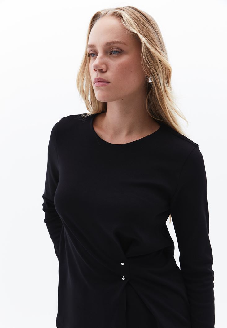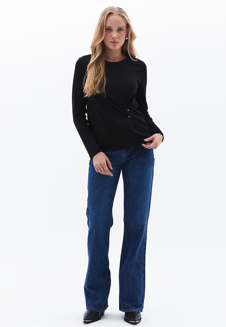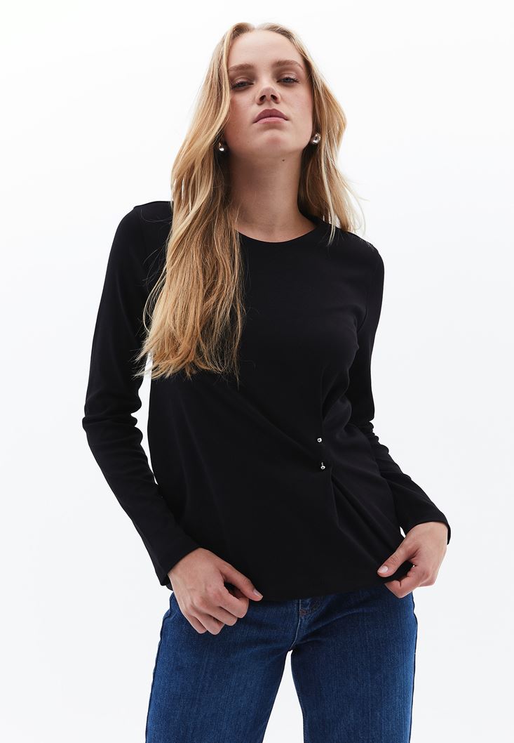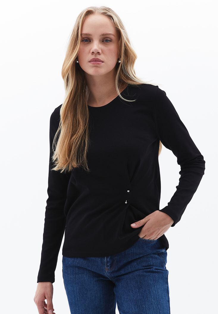 • Bayan Siyah Aksesuar Detaylı Tişört