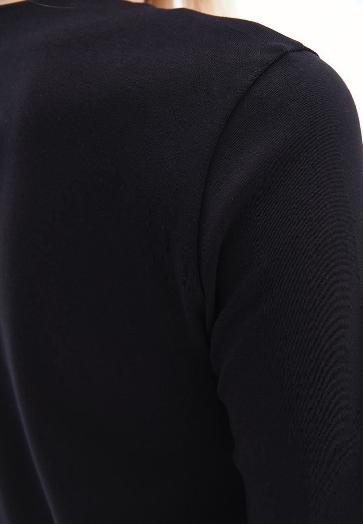 %100 pamuklu doğal içerik, bedene yakın rahat fit, uzun kollu, sıfır yaka, bel kısmında aksesuar detaylı.