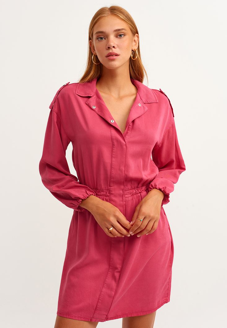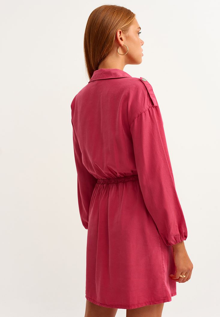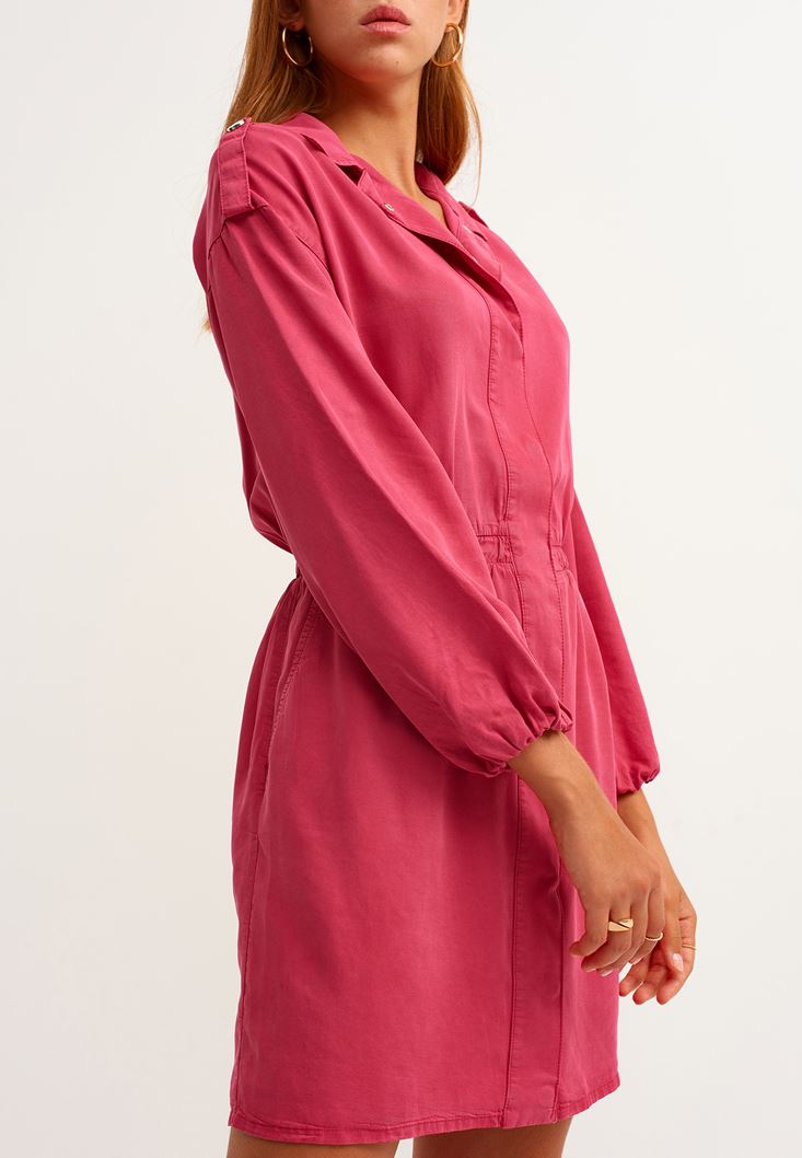 Kırmızı Apoletli Balon Kollu Mini Elbise ( TENCEL™ )