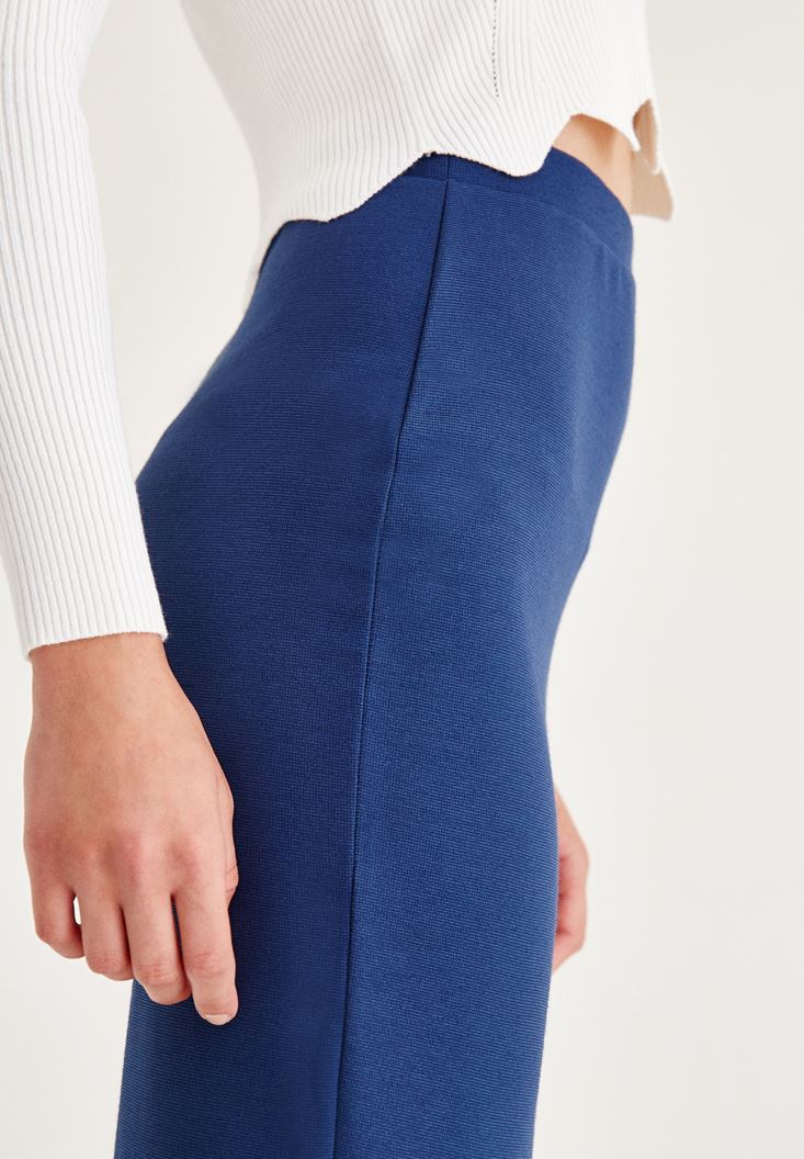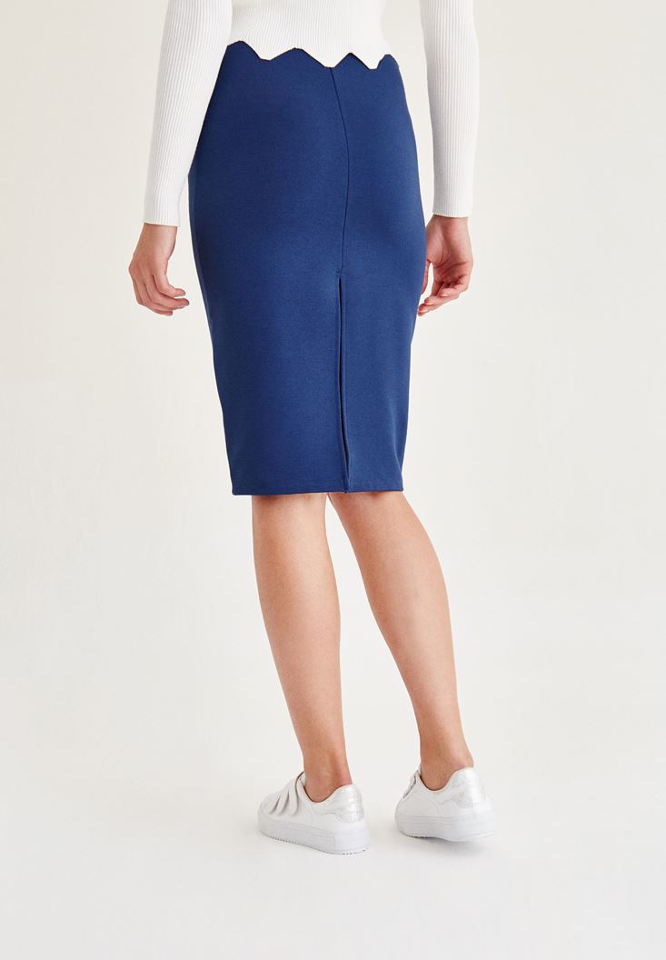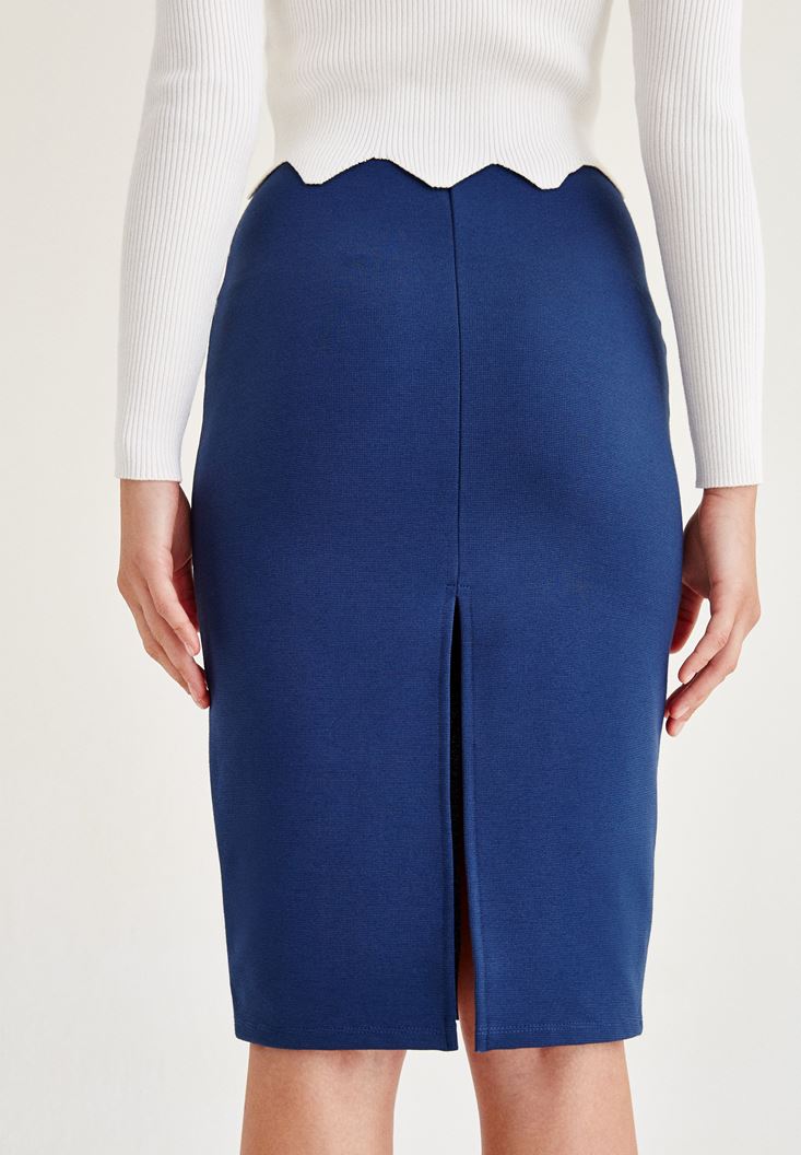 • Bayan Mavi Arka Yırtmaçlı Kalem Etek