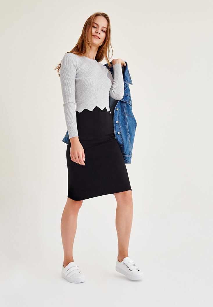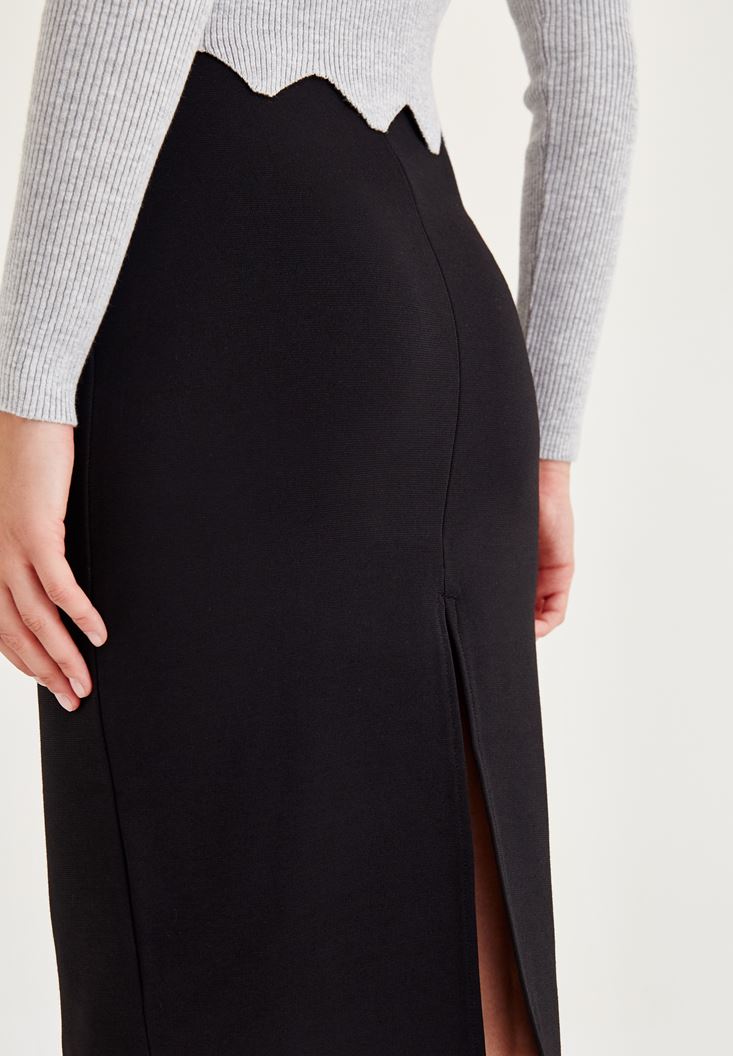 • Bayan Siyah Arka Yırtmaçlı Kalem Etek