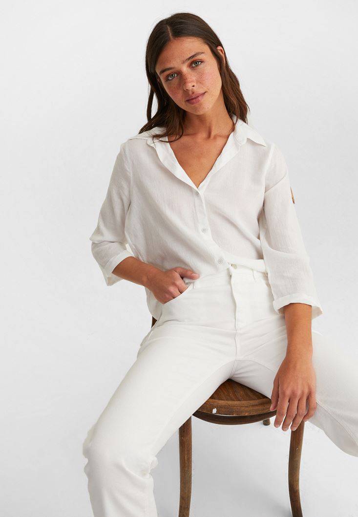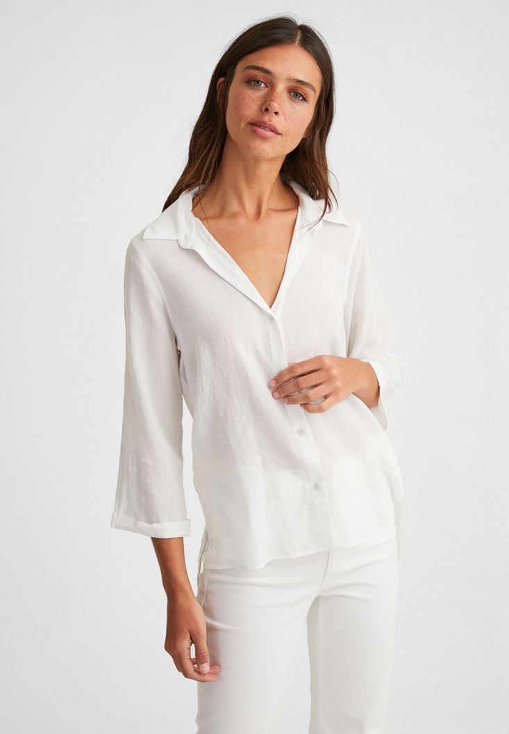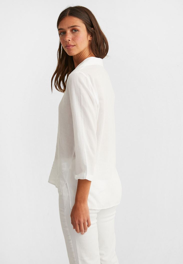 • Bayan Beyaz Arkası Uzun Dokulu Gömlek