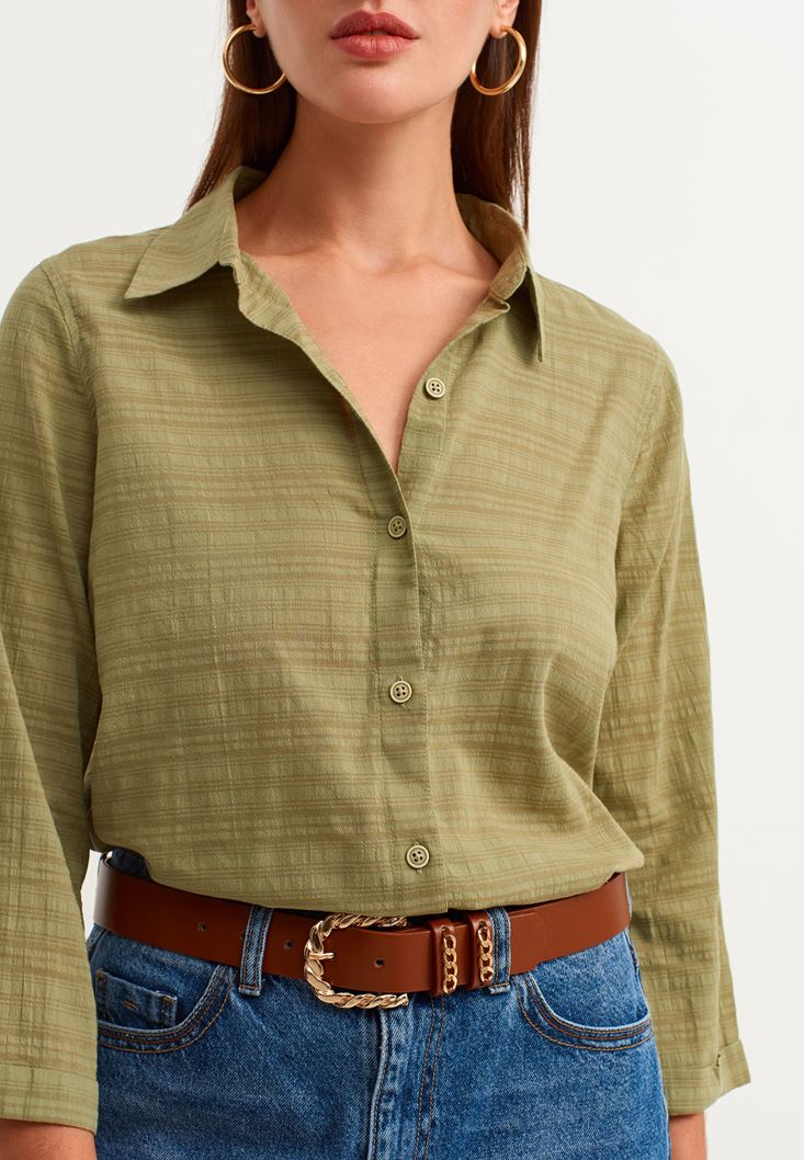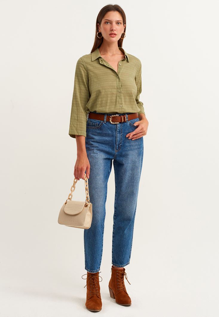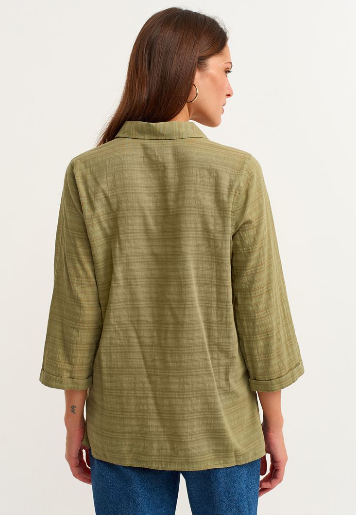 • Bayan Yeşil Arkası Uzun Dokulu Gömlek