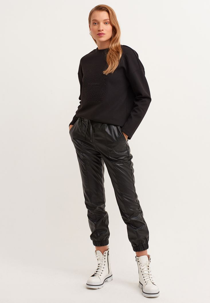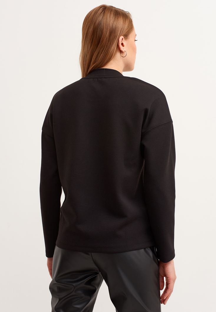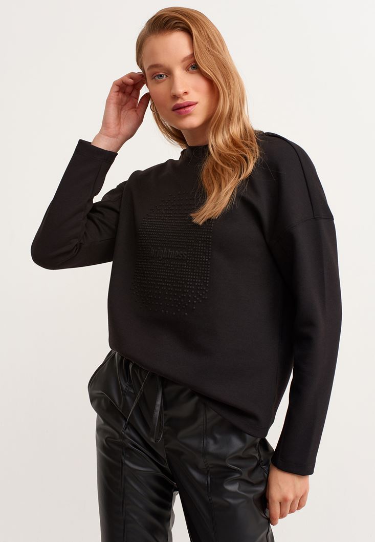 • Bayan Siyah Artwork Baskılı Zero-Neck Sweatshirt