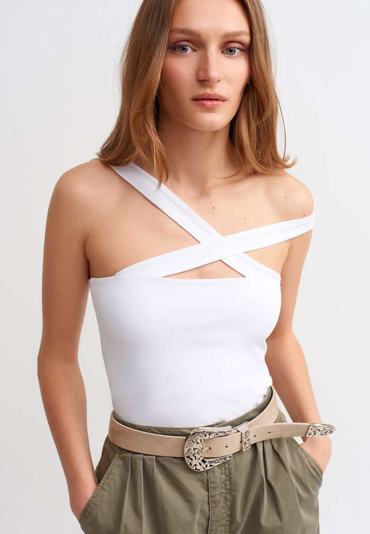 Beyaz Asimetrik Askılı Atlet