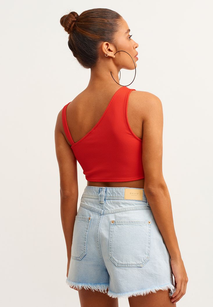 Asimetrik Askılı Büstiyer ve Mini Şort Kombini