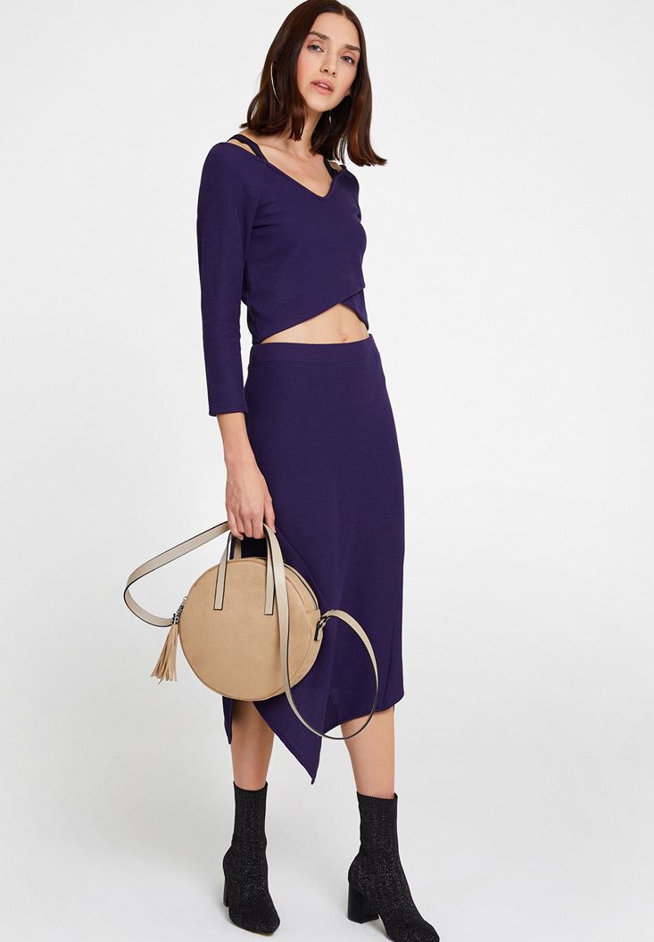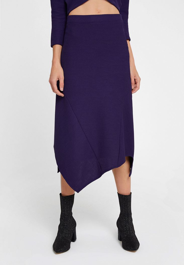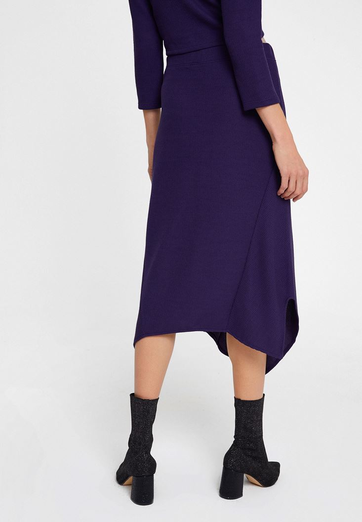 Mor Asimetrik Dikiş Detaylı Etek