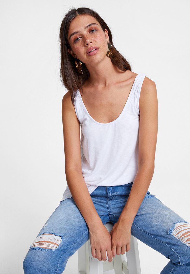 • Bayan Beyaz Asimetrik Kesim Askı Detaylı Bluz