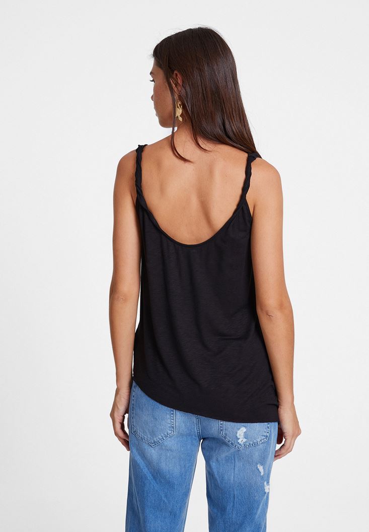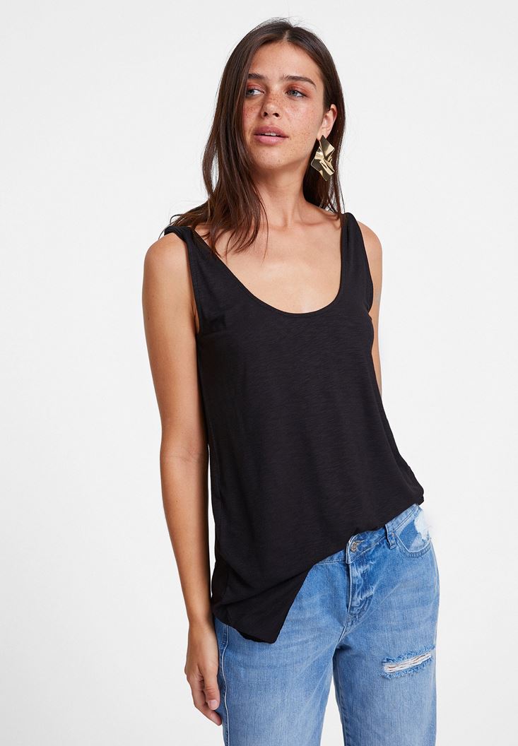 • Bayan Siyah Asimetrik Kesim Askı Detaylı Bluz