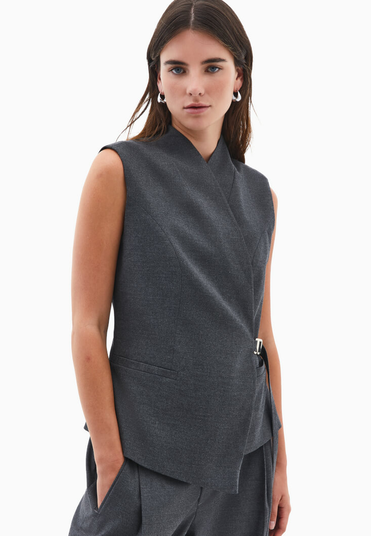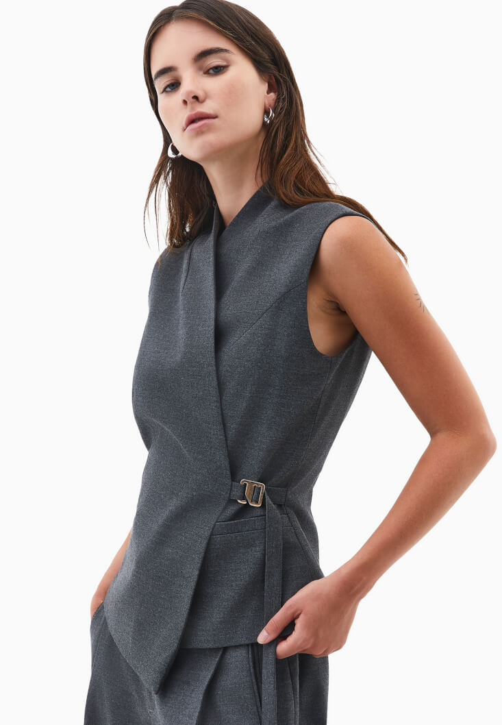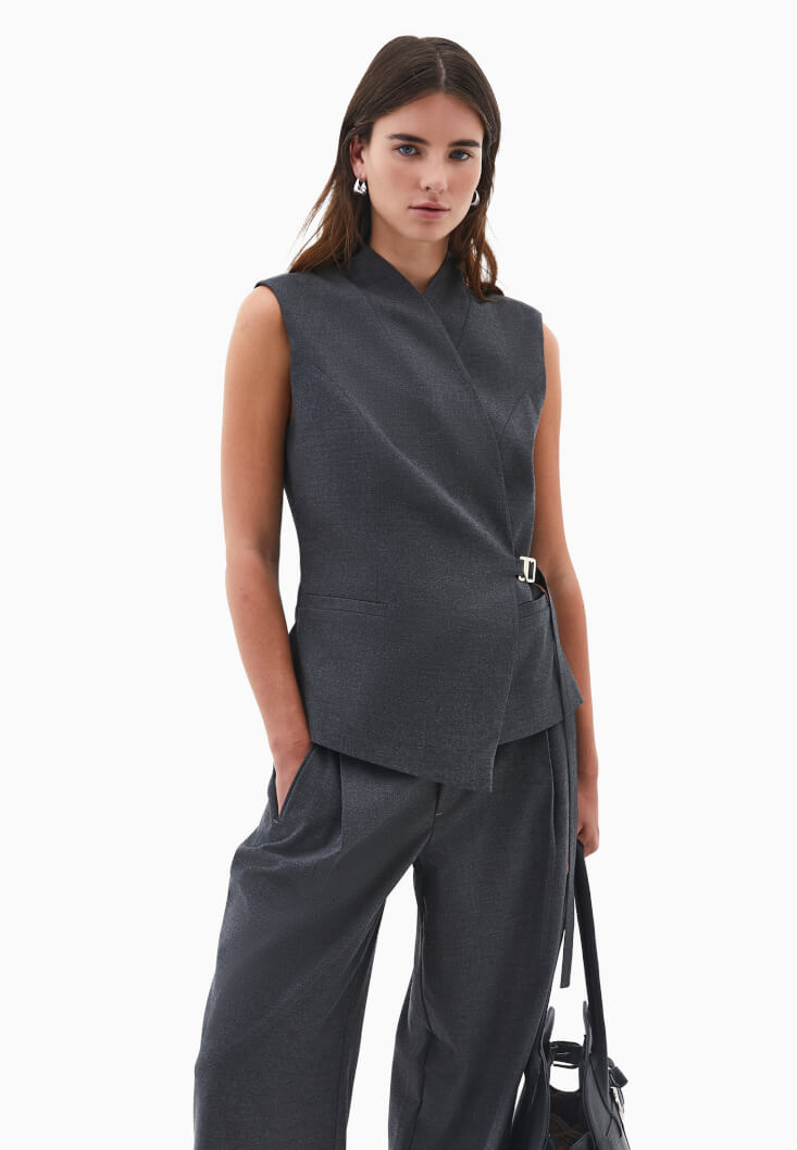 • Bayan Füme Asimetrik Kesim Bağlamalı Yelek