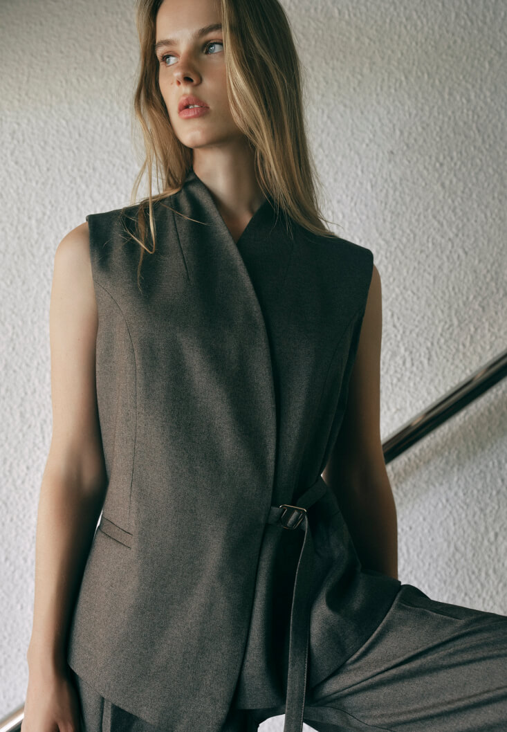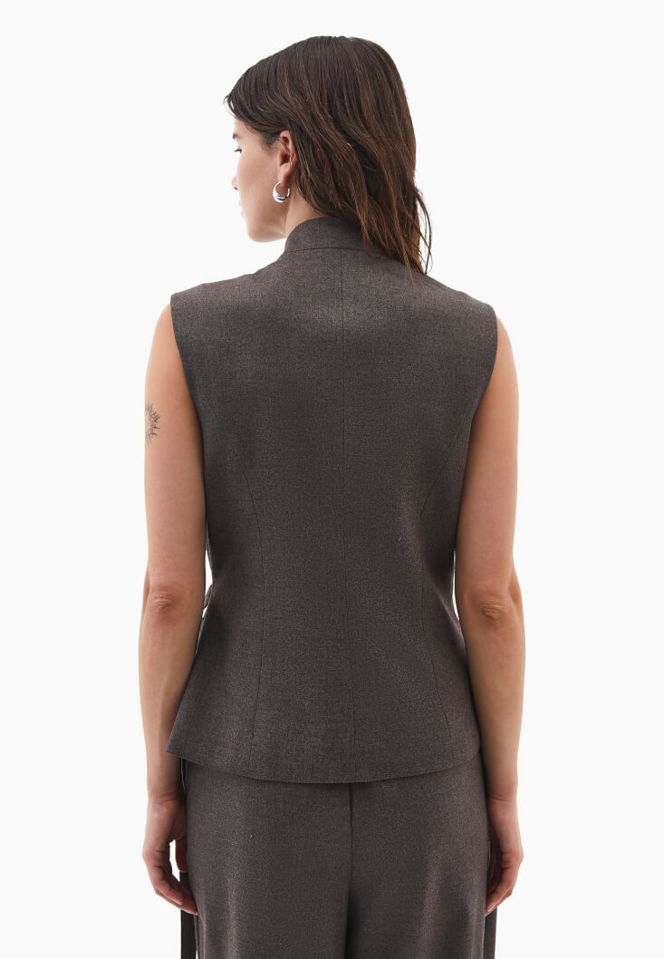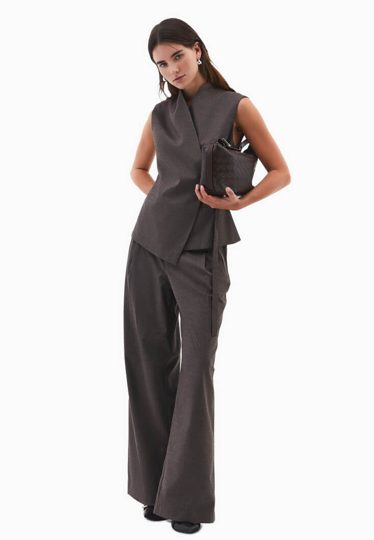 • Bayan Kahverengi Asimetrik Kesim Bağlamalı Yelek