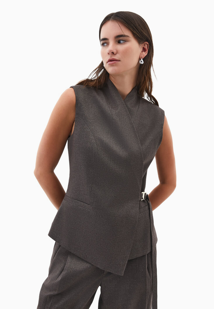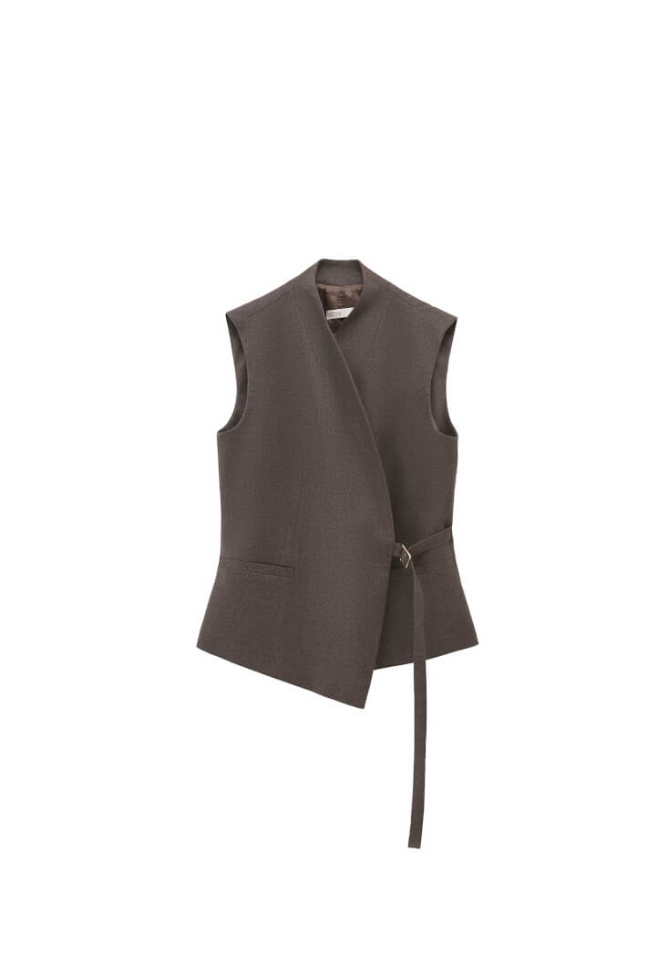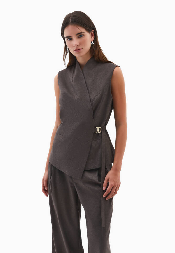 Kahverengi Asimetrik Kesim Bağlamalı Yelek