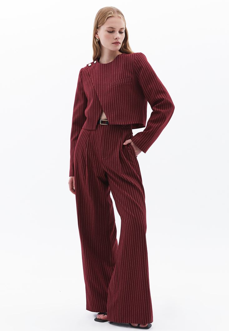 Asimetrik Kesim Ceket ve Wide-Leg Pantolon Kombini