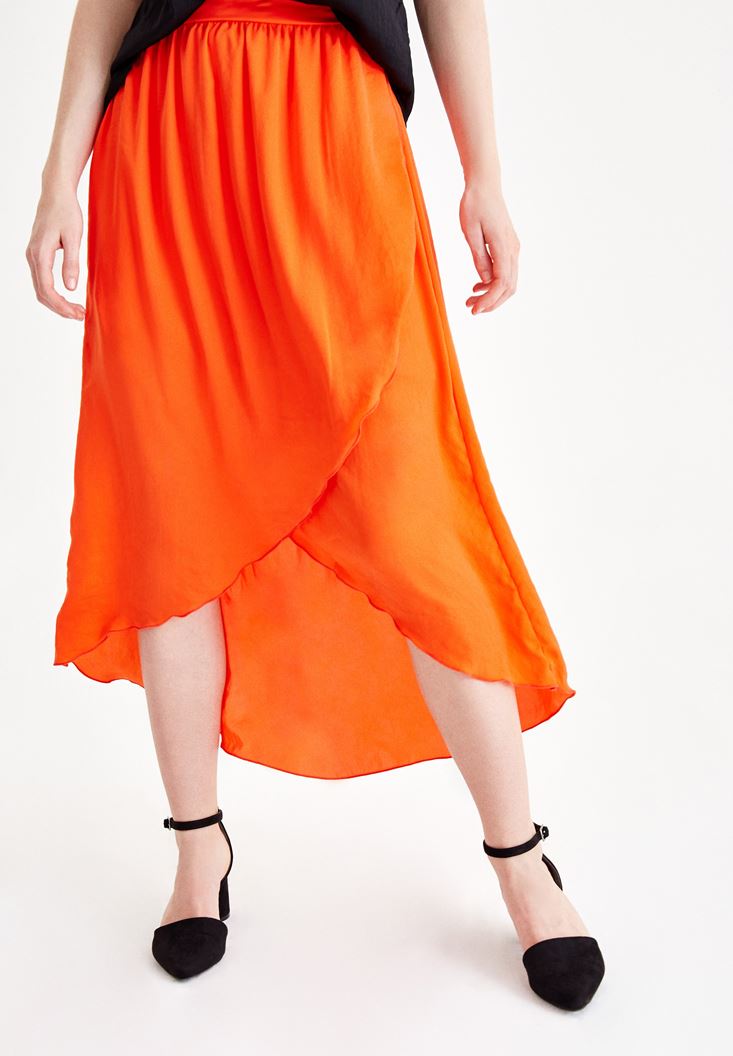 • Bayan Kırmızı Asimetrik Kesim Etek