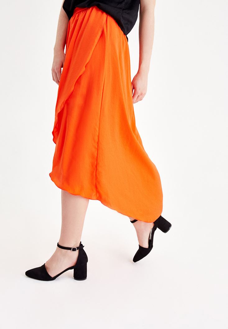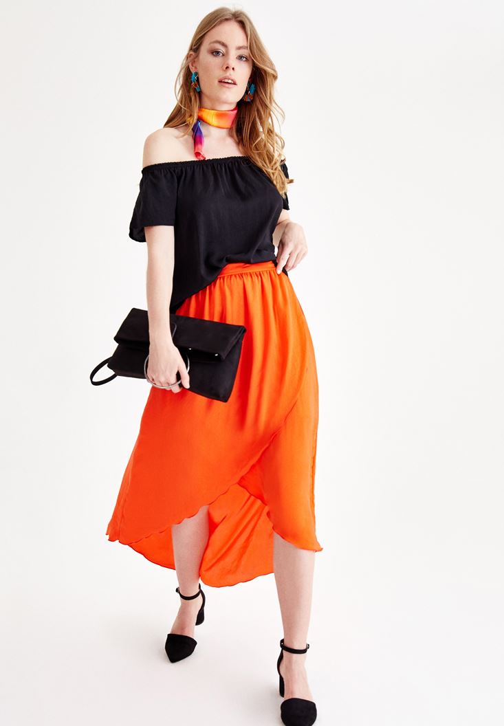 Asimetrik Kesim Etek dökümlü tasarimi ve yumusak dokusu ile her zaman kullanmaktan keyif alacaginiz etek modelleri arasinda yer aliyor. Lastikli bel detayi ile hem kullanim konforu hem de ufak pililerden olusan dökümlü bir görünüm olusturan etek modelinin etek ucunda kullanilan kapakli tasarim ve bu tasarimin olusturdugu asimetrik görünüm de hos bir enerji ve hareket olusturuyor. Farkli tarzlara sahip üst giyim parçalari ile tamamlayabileceginiz etek modelini hem topuklu hem de düz ayakkabilar ile rahatlikla kullanabilirsiniz. OXXO'nun kendine has tarzini yeni sezon trendleri ile bir araya getiren tasarimlarindan birisi olan Asimetrik Kesim Etek modeli ile kendinize her zaman konforlu ve sik kombinler yapabilirsiniz.