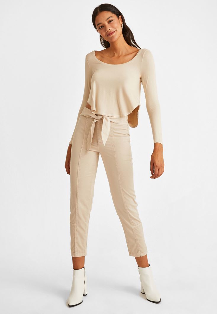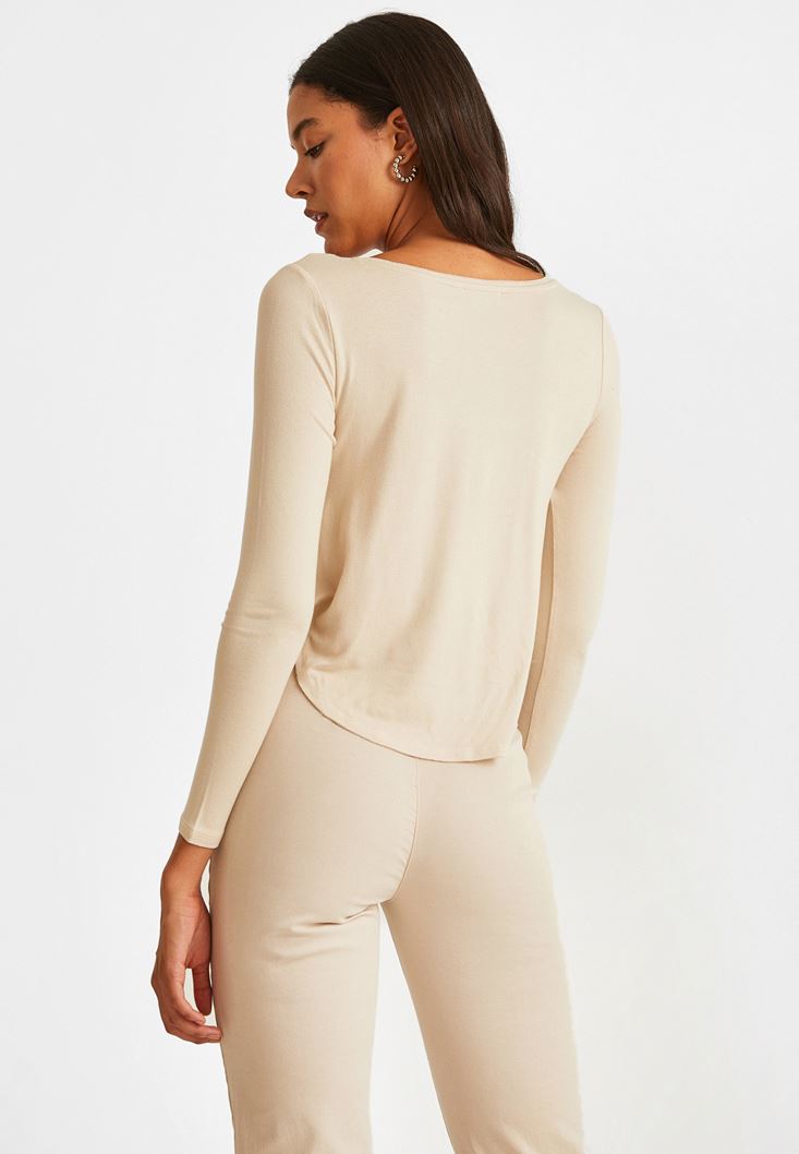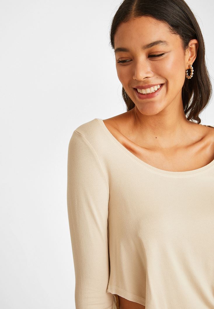 • Bayan Krem Asimetrik Kesim Kısa Bluz