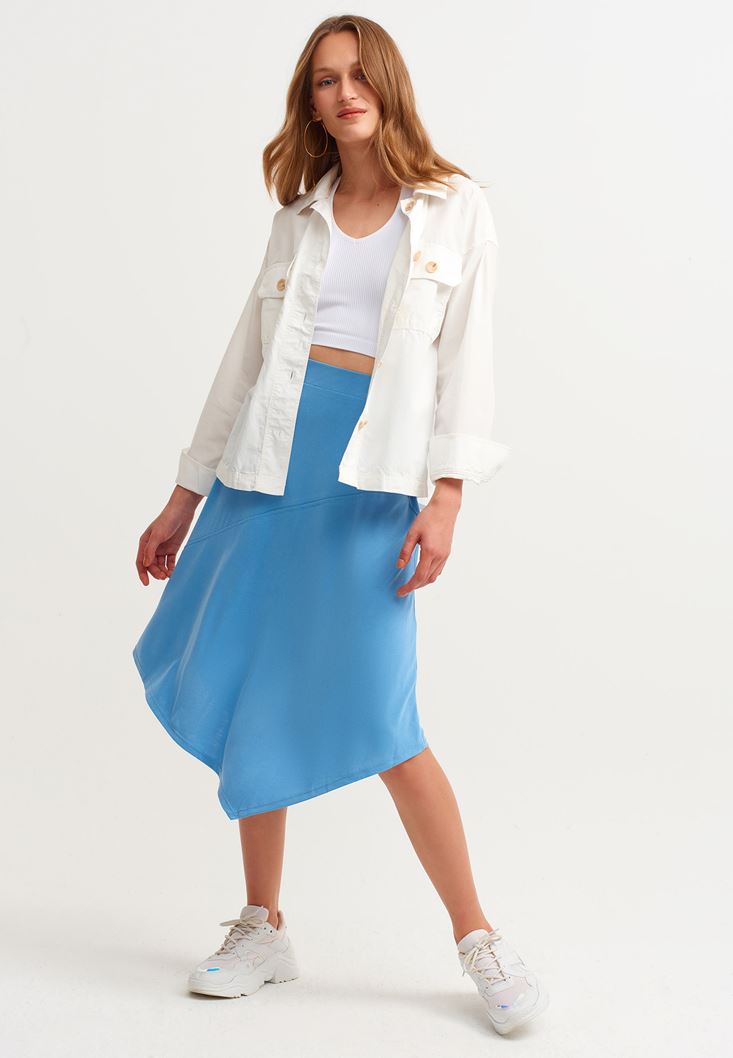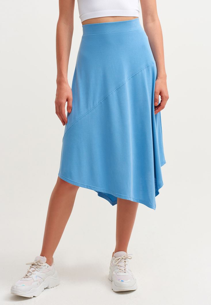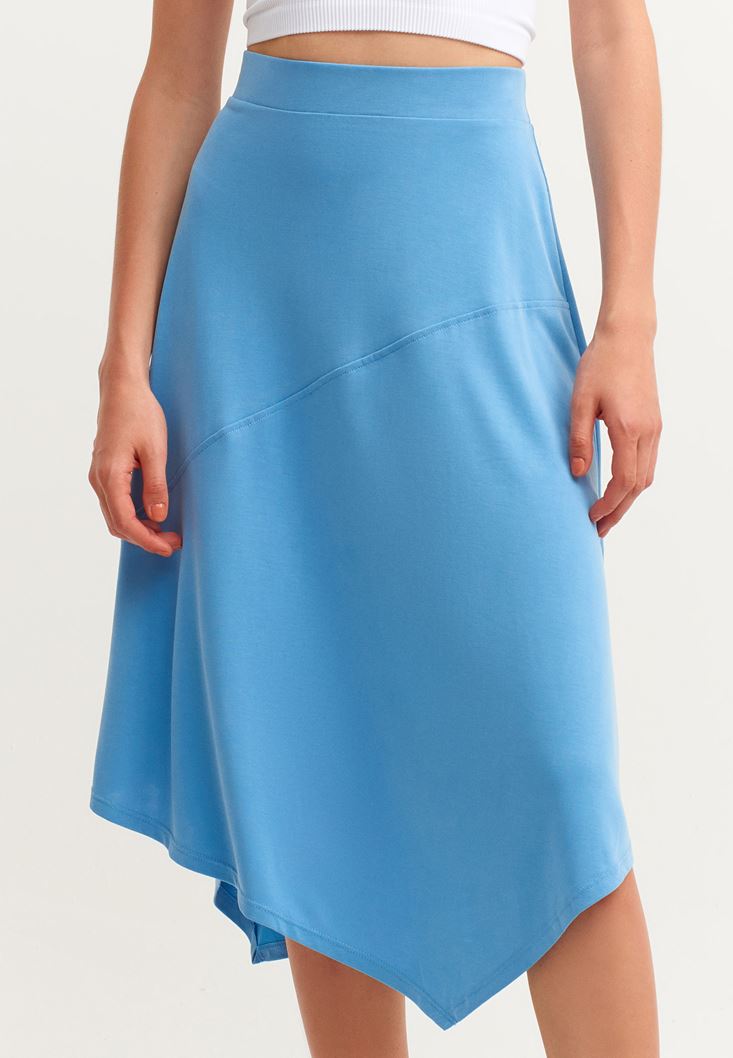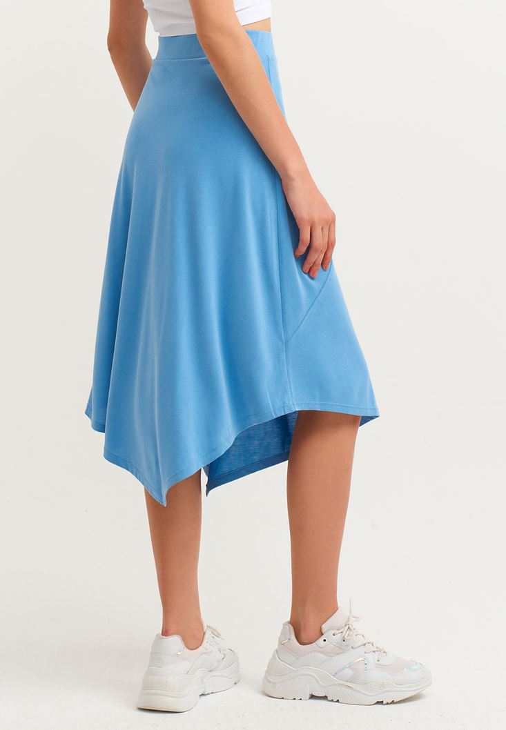 Mavi Asimetrik Kesim Midi Boy Etek
