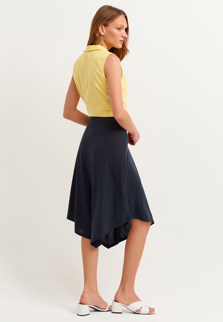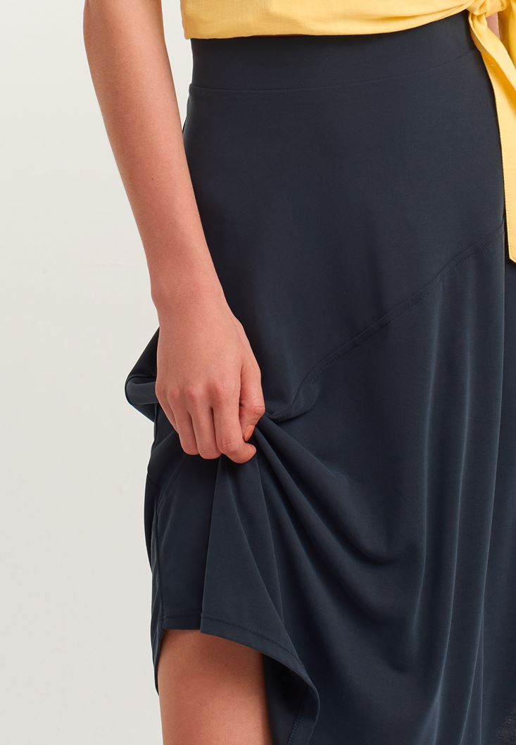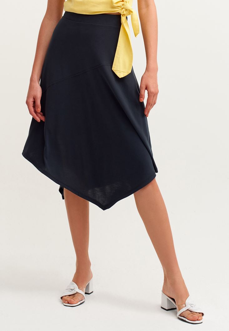 Siyah Asimetrik Kesim Midi Boy Etek