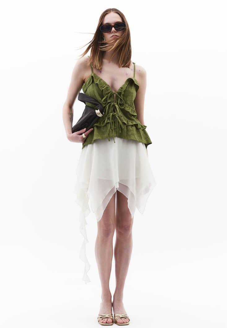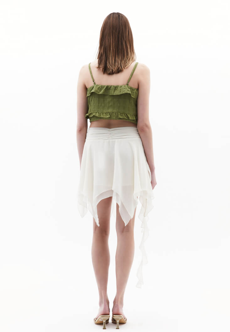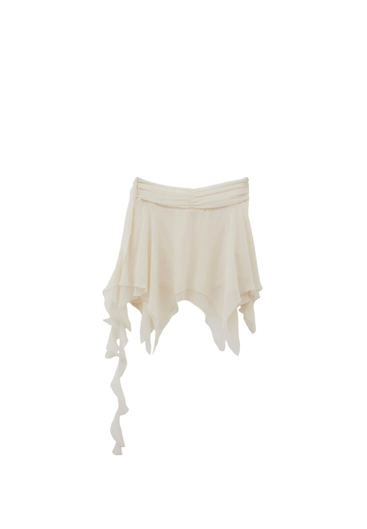 • Bayan Krem Asimetrik Kesim Mini Etek