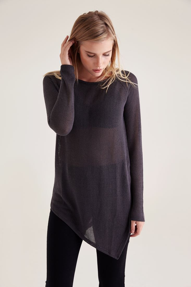 Gümüş Asimetrik Kesimli Transparan Bluz