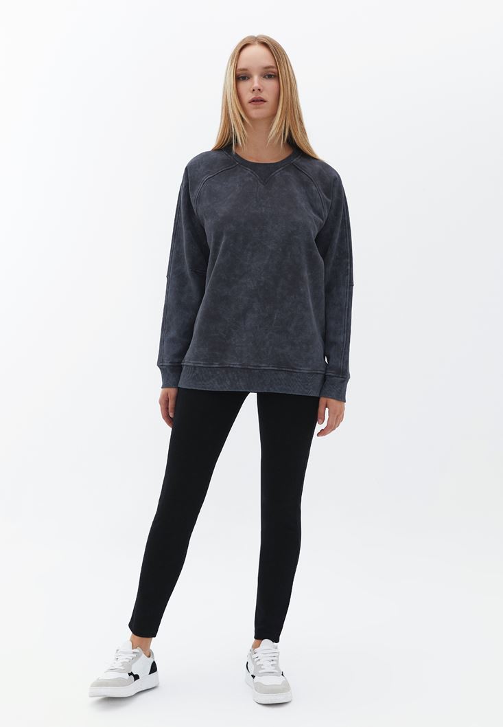 Gri Asit Yıkamalı Oversize Sweatshirt