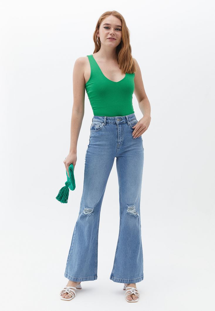 Askı Detaylı V Yaka Atlet